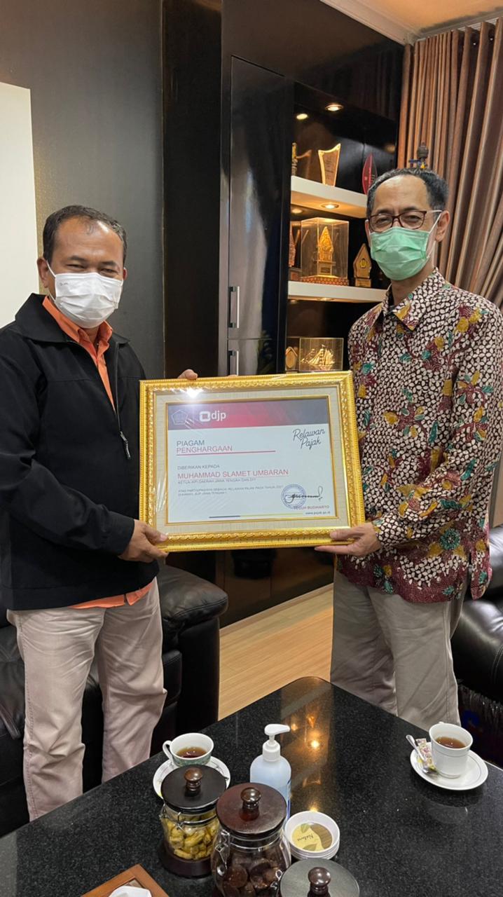 Kepala Kantor Wilayag DJP Jateng I Teguh Budianto mengukuhkan M. Slamet Umbaran, Ketua Pengurus Daerah IKPI Jawa Tengah dan DIY serta Jan Prihadi Surjawidjaja, Ketua Pengurus IKPI Cabang Semarang menjadi Relawan Pajak Non Mahasiswa tahun 2021 di Semarang (Kamis, 8/4). Kanwil DJP Jateng I berharap IKPI dapat memainkan peranannya dalam mengedukasi masyarakat terutama wajib pajak mengenai fasilitas perpajakan yang disediakan pemerintah untuk mendorong pertumbuhan ekonomi.