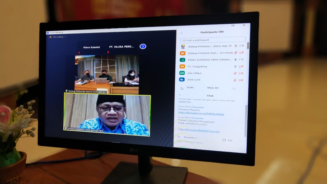 Kantor Wilayah Direktorat Jenderal Pajak Jawa Tengah II (Kanwil DJP Jateng II) bekerja sama dengan Dinas Koperasi dan UKM Kota Surakarta menggelar kelas pajak secara daring dari Surakarta (Kamis, 20/5). Kelas pajak yang mengusung tema “Sosialisasi PMK-9/PMK.03/2021 bagi UMKM Kanwil DJP Jawa Tengah II” dan diselenggarakan melalui aplikasi Zoom Meeting ini diikuti oleh 31 wajib pajak UMKM.