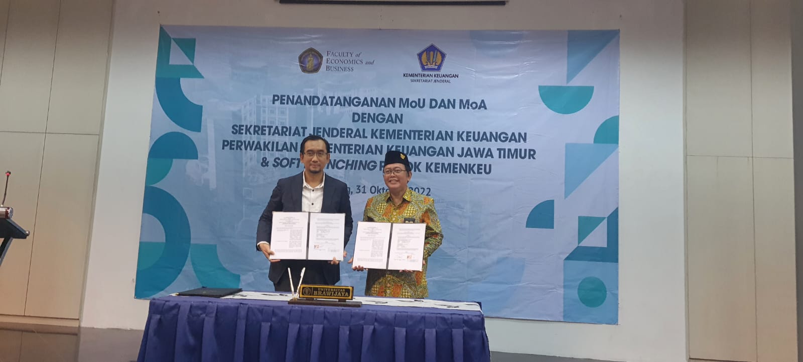 Sinergi dan Kolaborasi Kanwil DJP Jatim I, Kanwil DJP Jatim II, dan Kanwil DJP Jatim III terus dorong Program Kemenkeu Satu Jawa Timur, salah satunya melalui penandatangan Nota Kesepahaman antara Perwakilan Kementerian Keuangan Jawa Timur dan Universitas Brawijaya tentang Pendidikan, Pelatihan, Penelitian, Edukasi Masyarakat dan Pengembangan Sumber Daya Manusia di Bidang Pengelolaan Keuangan Negara. Nota kesepahaman tersebut ditandatangani P.M. Joh L. Hutagaol selaku Kepala Perwakilan Kementerian Keuangan Jawa Timur dan Widodo selaku Rektor Universitas Brawijaya, Malang (Senin, 31/10).