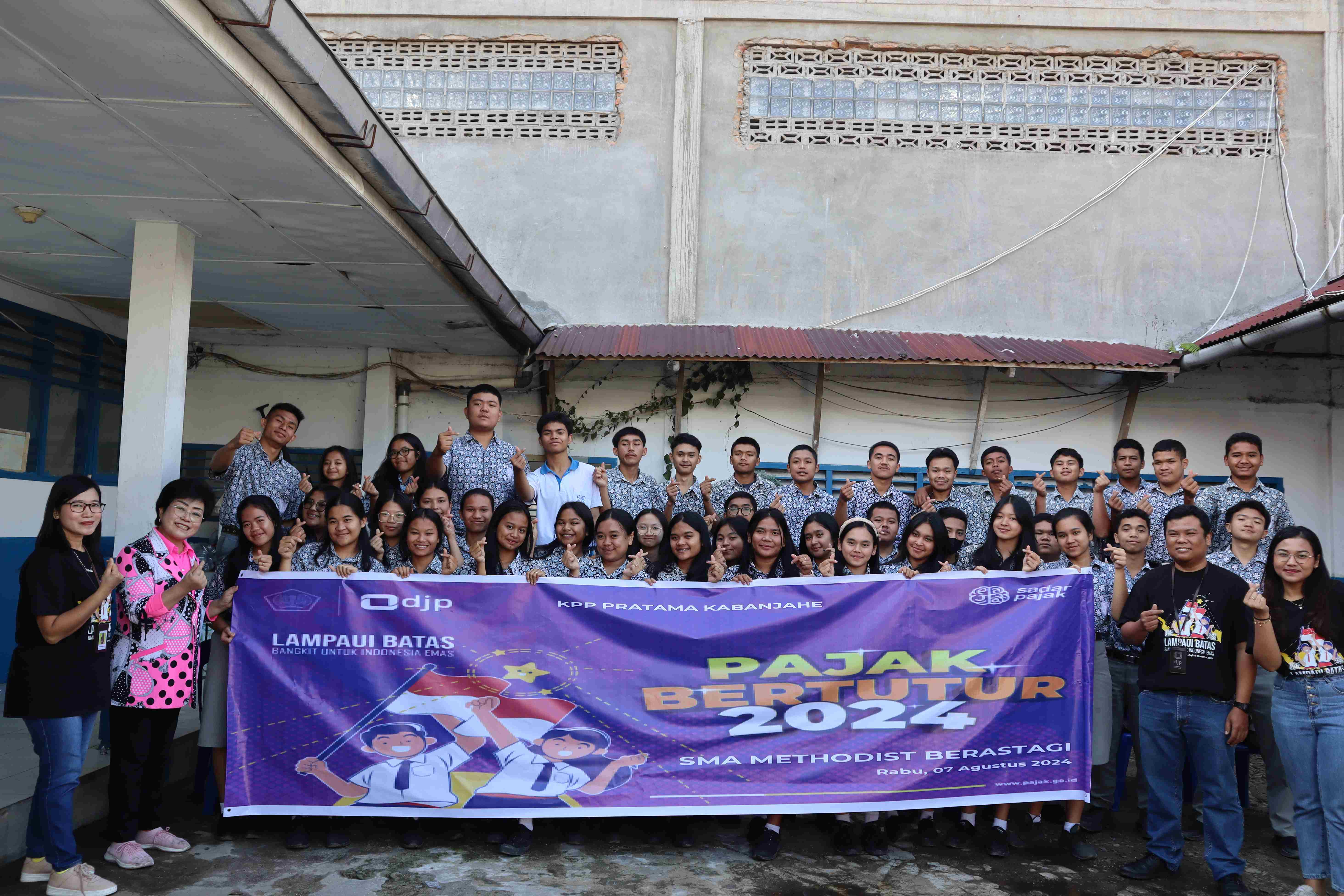 Pajak bertutur dilaksanakan secara serentak oleh seluruh unit kerja di Direktorat Jenderal Pajak (DJP) dengan mengusung tema “Lampaui Batas, Bangkit untuk Indonesia Emas”. Sebayak 40 siswa Sekolah Menengah Atas (SMA) Methodist Berastagi menyambut dengan sangat antusias kegiatan ini.