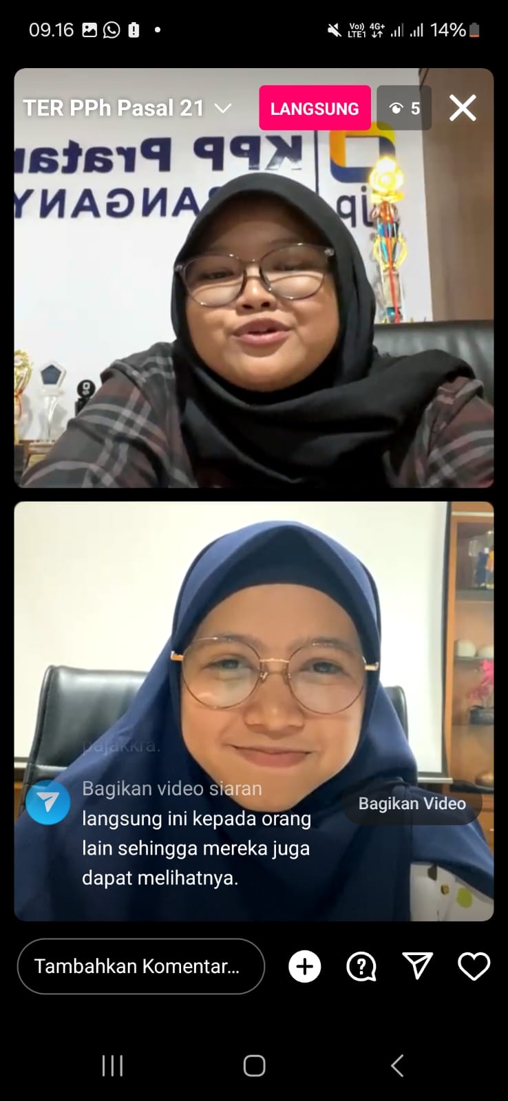 “Terima Kasih Nuril atas sharingnya dengan kawan pajak, semoga bisa memberikan pencerahan kepada wajib pajak terkait ketentuan terbaru PPh 21 ini,” ujar Retno mengakhiri siaran langsung Instagram.