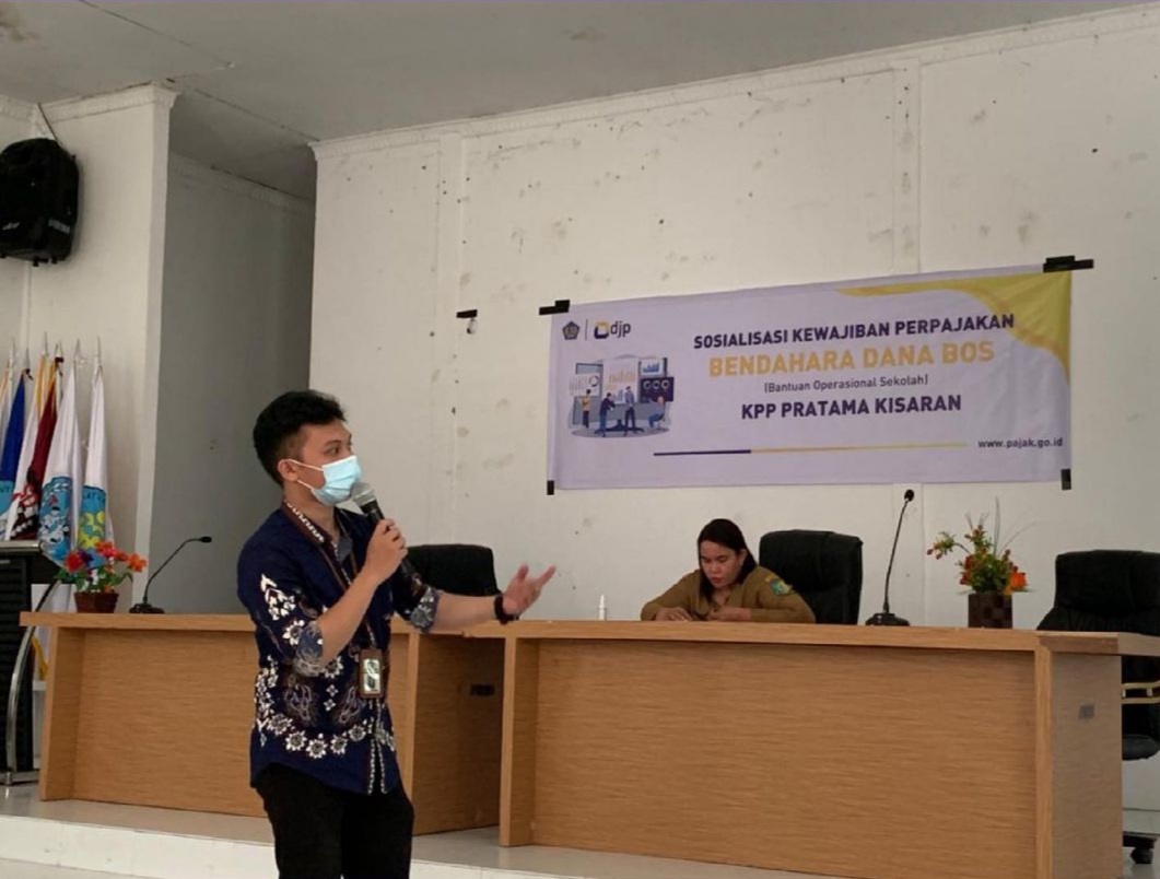 Kantor Pelayanan Pajak (KPP) Pratama Kisaran melaksanakan kegiatan Sosialisasi Kewajiban Pajak Bendahara, khususnya terkait dana Bantuan Operasional Sekolah (BOS) di aula Dinas Pendidikan Kabupaten Batubara, Kabupaten Batubara (Selasa, 6/7).