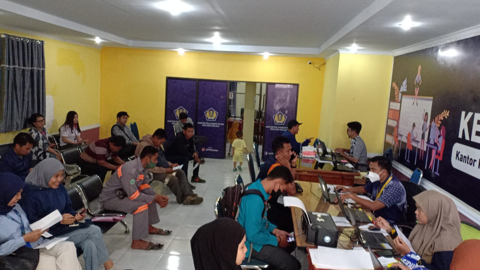 Pegawai yang bertugas dengan sigap dan siap melayani wajib pajak berupa pendampingan dalam pengisian SPT Tahunan, pemadanan Nomor Induk Kependudukan (NIK) menjadi Nomor Pokok Wajib Pajak (NPWP) serta Permohonan Electronic Filing Indentification Number (EFIN), baik secara langsung maupun melalui saluran Whats App Pelayanan.