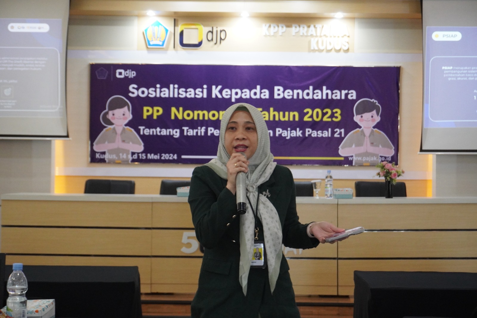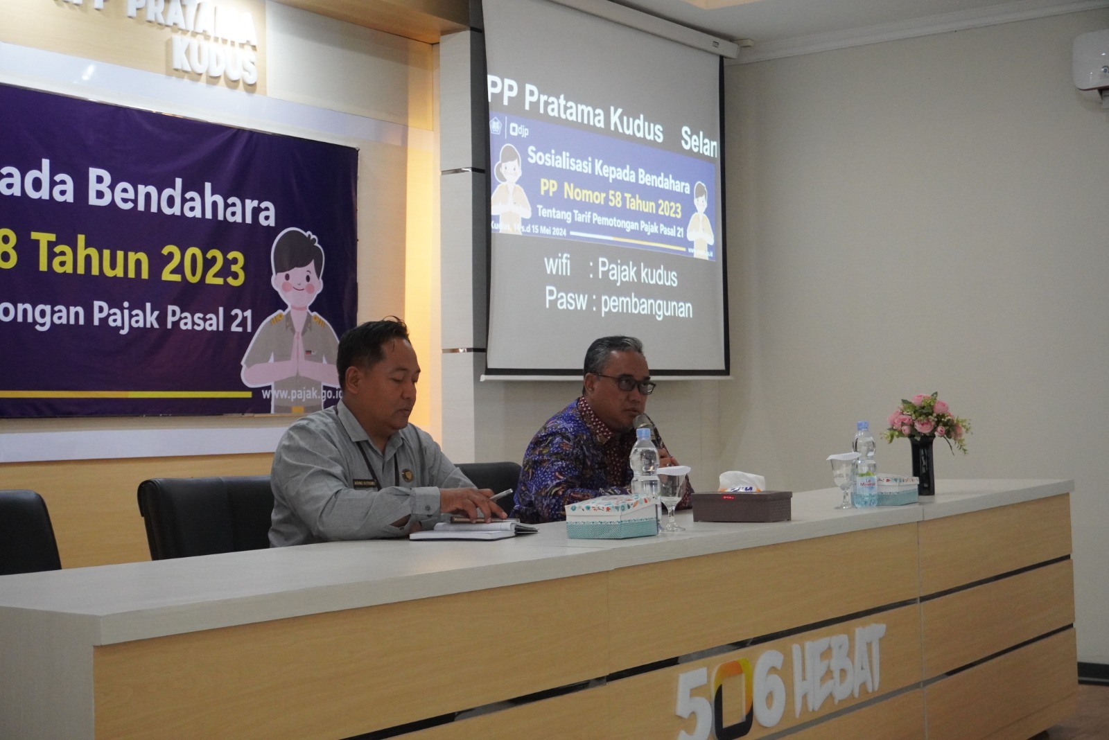 Kantor Pelayanan Pajak (KPP) Pratama Kudus menyelenggarakan kegiatan Sosialisasi Peraturan Pemerintah (PP) Nomor 58 tahun 2023 tentang Tarif Pemotongan Pajak Penghasilan (PPh) Pasal 21 atas Penghasilan Sehubungan dengan Pekerjaan, Jasa dan Kegiatan Wajib Pajak Orang Pribadi selama 2 (dua) hari pada tanggal 14 dan 15 Mei 2024 dengan mengundang 97 instansi pemerintah dilingkungan Kabupaten Kudus.