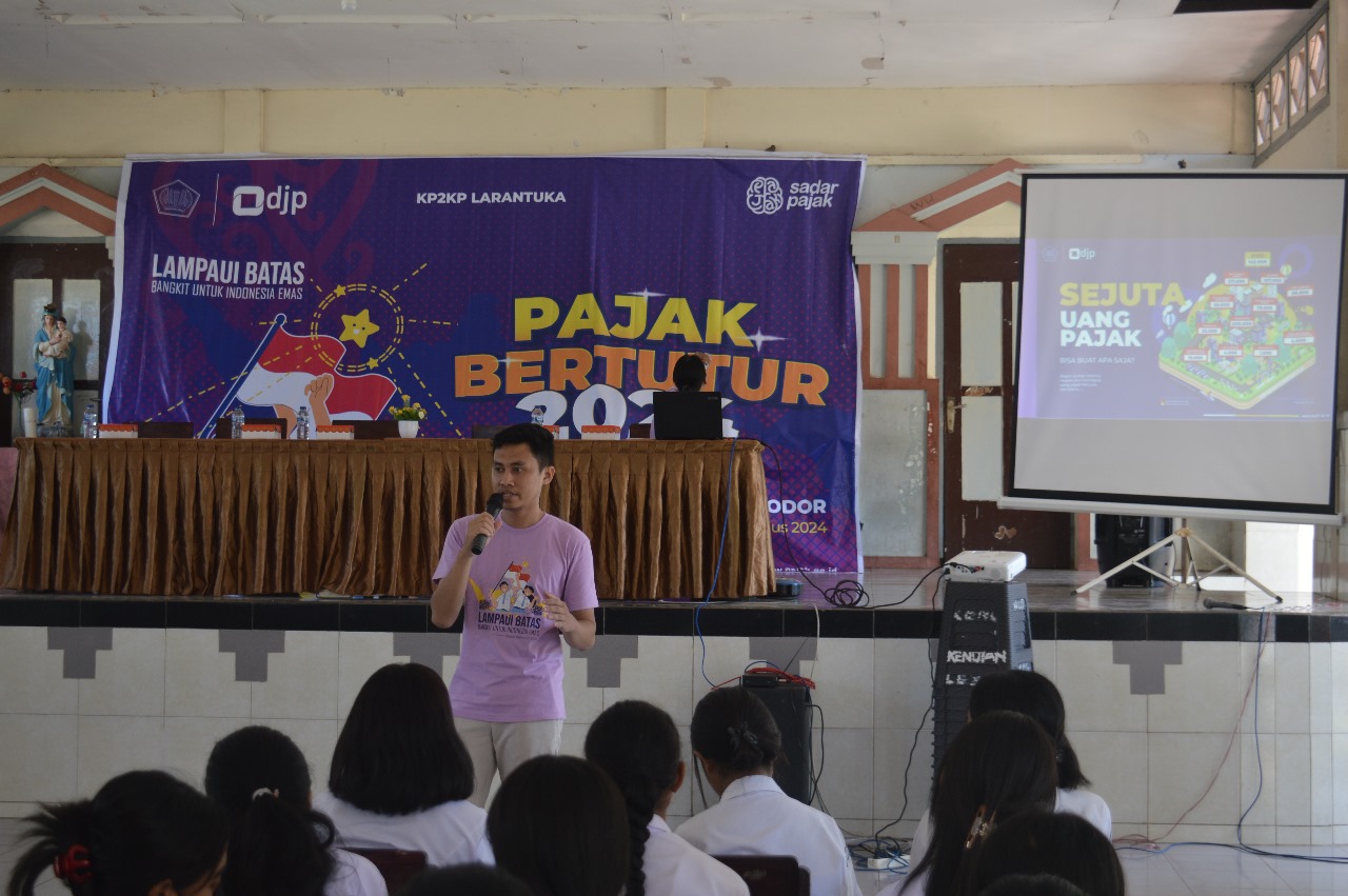 Kantor Pelayanan, Penyuluhan, dan Konsultasi Perpajakan (KP2KP) Larantuka mengadakan kegiatan Pajak Bertutur 2024 secara luring di Aula SMAK Frateran Podor, Kecamatan Larantuka, Kabupaten Flores Timur (Rabu, 7/8).