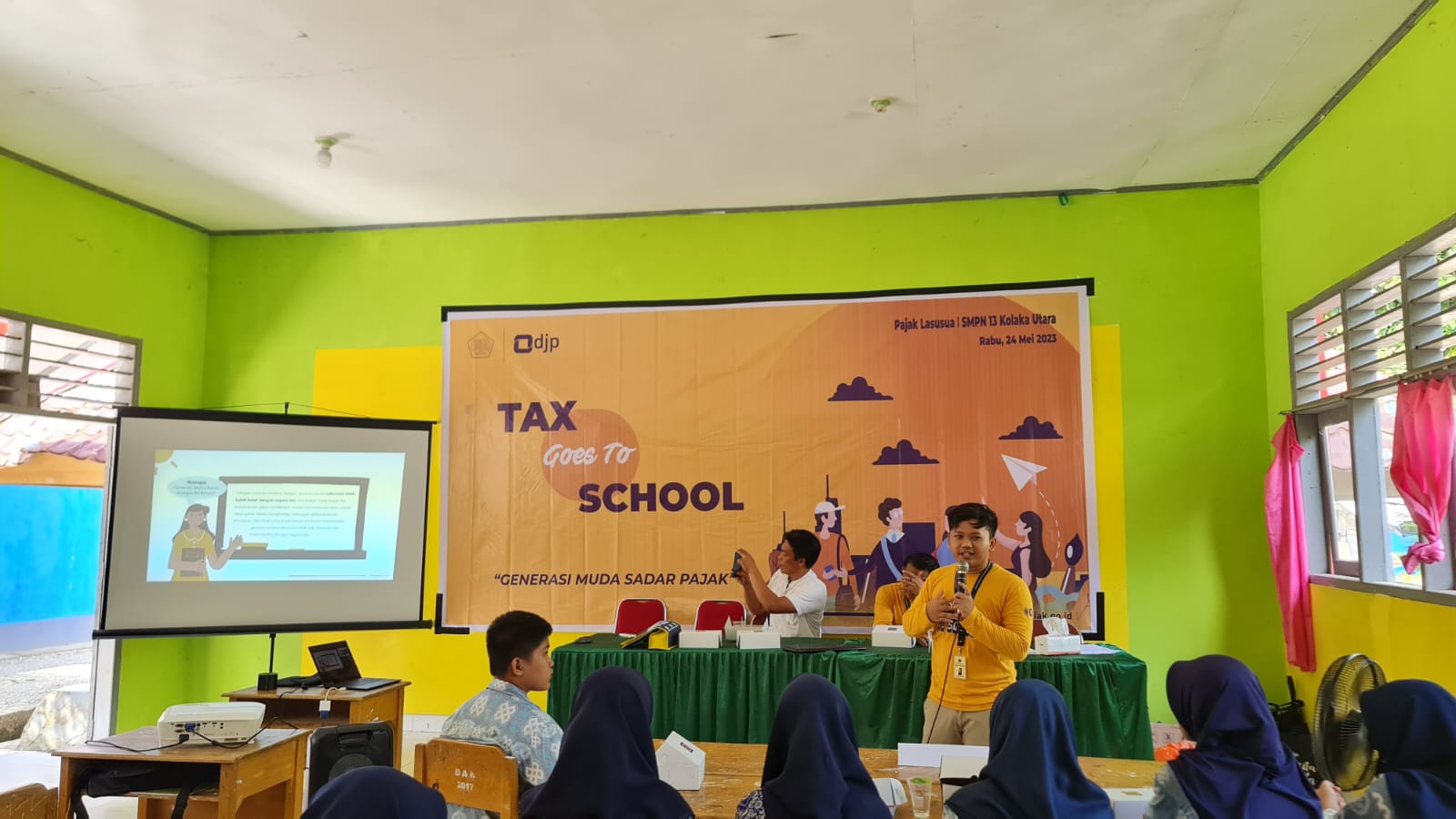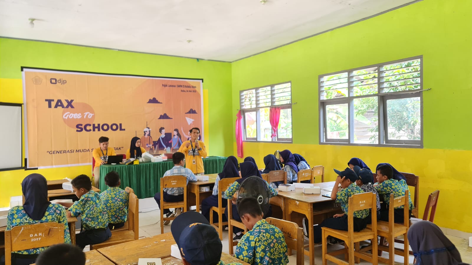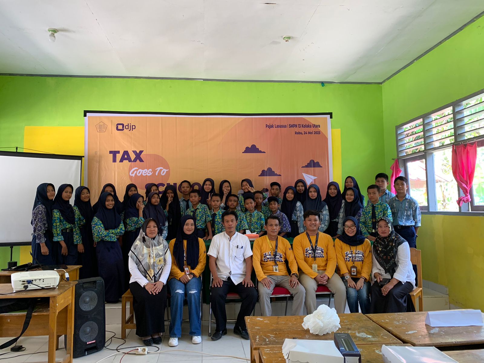 Kantor Pelayanan, Penyuluhan, dan Konsultasi Perpajakan (KP2KP) Lasusua melaksanakan kegiatan Tax Goes To School (TGTS) secara tatap muka yang diikuti oleh 30 siswa Sekolah Menengah Pertama (SMP) Negeri 13 Kolaka Utara di Desa Rantelimbong, Lasusua, Kolaka Utara (Rabu, 24/5).