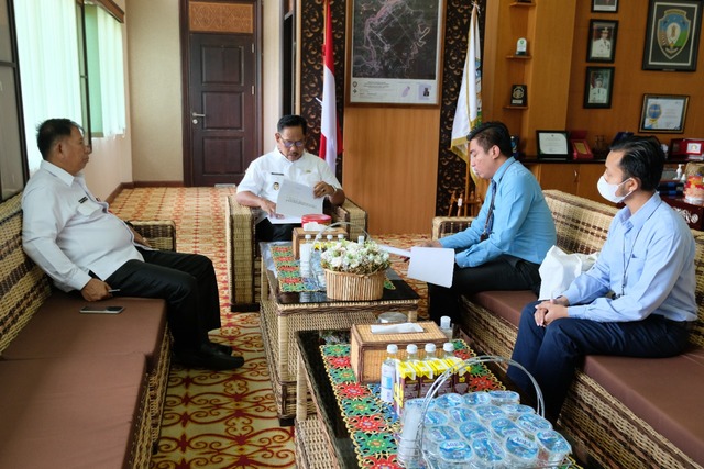 Kepala Kantor Pelayanan, Penyuluhan, dan Konsultasi Perpajakan (KP2KP) Malinau Andika Setiawan menemui Wakil Bupati Malinau Jakaria guna serahkan surat imbauan pemadanan NIK-NPWP untuk warga Malinau di Kantor Bupati Malinau Kab. Malinau (Rabu, 11/1).