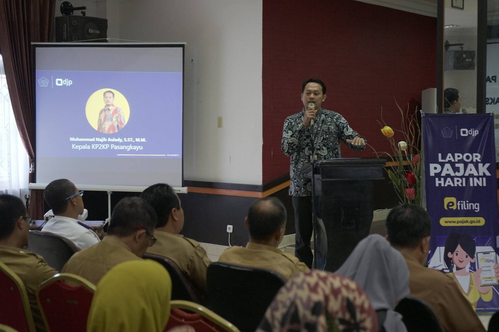 Kantor Pelayanan Pajak (KPP) Pratama Mamuju dan Kantor Pelayanan, Penyuluhan, dan Konsultasi Perpajakan (KP2KP) Pasangkayu mengadakan acara pekan panutan sekaligus sosialisasi pemadanan Nomor Induk Kependudukan (NIK) menjadi Nomor Pokok Wajib Pajak (NPWP) serta pelaporan Surat Pemberitahuan (SPT) Tahunan di Aula Kantor Bupati Pasangkayu (Selasa, 14/2).