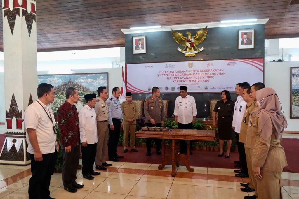 Pada sambutannya dalam seremoni penandatanganan nota kesepakatan, Bupati Magelang Zaenal Arifin menyampaikan bahwa MPP merupakan suatu bentuk sinergi antar instansi pemerintah dalam memberikan pelayanan kepada masyarakat. “MPP diharapkan dapat memfasilitasi masyarakat dalam menjangkau layanan dari instansi vertikal, OPD, BUMN serta BUMD yang terintegrasi,”ungkapnya.