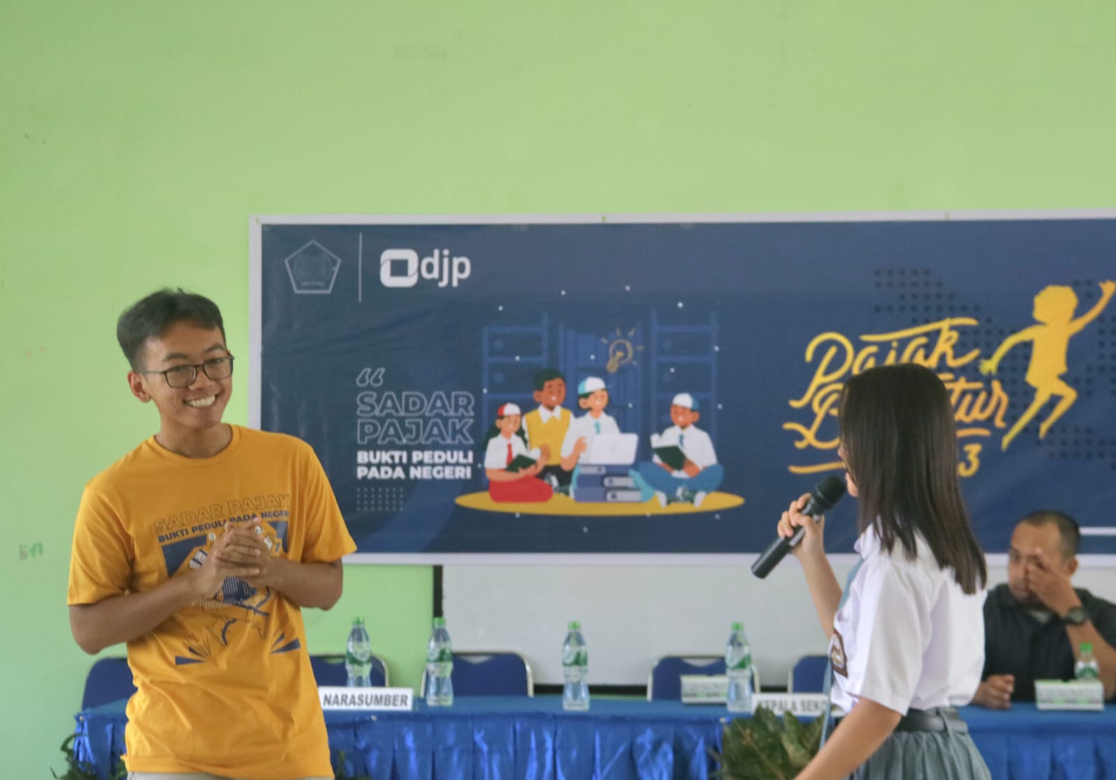 Saat sesi materi, setiap kali ada siswa yang ikut berpartisipasi, panita memberikan apresiasi berupa cokelat. Hal ini dilakukan agar suasana saat penyampaian materi lebih ramai. Ada beberapa siswa yang terlihat berulang kali menjawab pertanyaan yang diberikan. “Bagaimana cara membayar pajak?” tanya salah satu siswa saat sesi diskusi. Pemateri kemudian menjelaskan bahwa wajib pajak perlu membuat kode billing terlebih dahulu dan seteleah mendapatkan kode billing wajib pajak dapat melakukan pembayaran pajak melalui bank atau kantor pos.