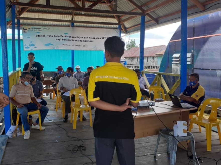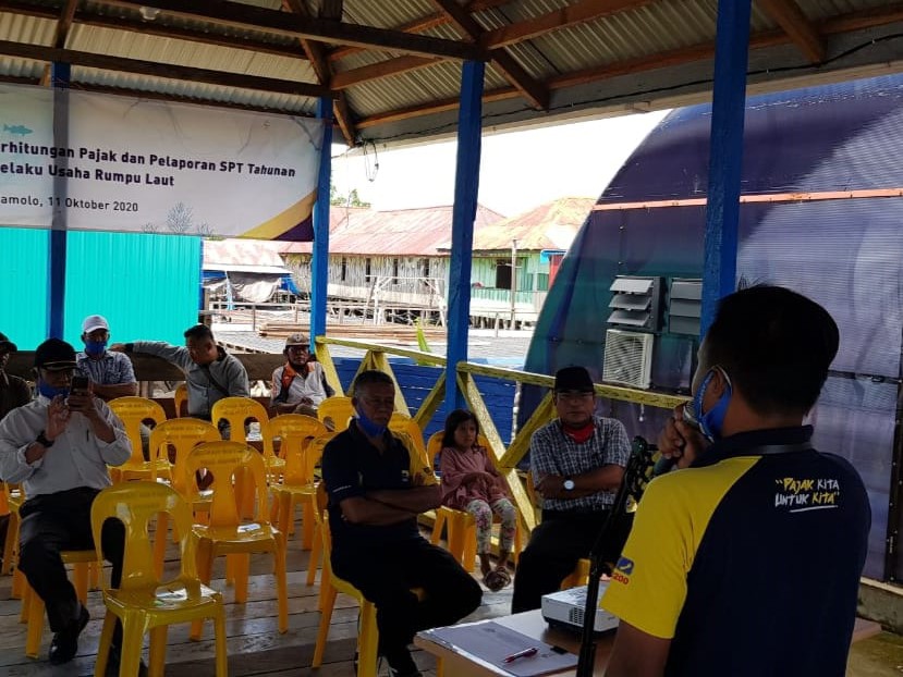 Kantor Pelayanan, Penyuluhan, dan Konsultasi Perpajakan (KP2KP) Nunukan mengadakan edukasi perpajakan dengan mengusung tema "Tata Cara Perhitungan Pajak dan Pelaporan SPT bagi Pelaku Usaha Rumput Laut" di Nunukan (Minggu, 11/10). Bertempat di Mamolo Central Rumput Laut yang terletak di Kecamatan Nunukan Selatan, kegiatan ini dihadiri langsung oleh Camat Nunukan Selatan.