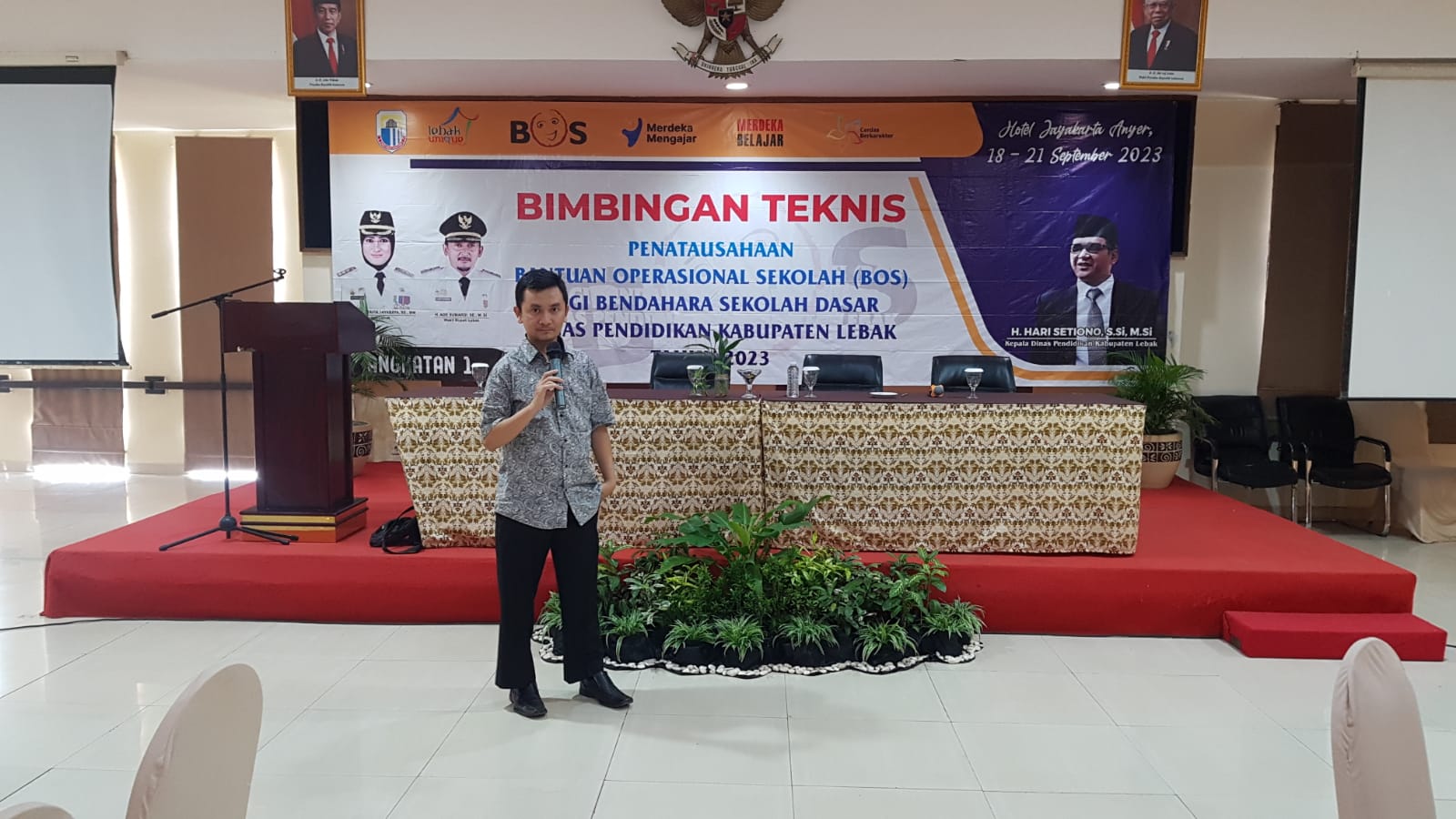 Tim Penyuluh Pajak Kantor Pelayanan Pajak (KPP) Pratama Pandeglang turut menyampaikan materi perpajakan pada bendahara instansi pemerintah dalam kegiatan Pelatihan, Sosialisasi dan Bimbingan Teknis Penatausahaan BOS SD yang diselenggarakan oleh Dinas Pendidikan Kabupaten Lebak (Senin, 18/9). Acara ini dilangsungkan selama dua hari sampai Selasa, 19 September 2023 bertempat di The Jayakarta Hotel Anyer, Banten.
