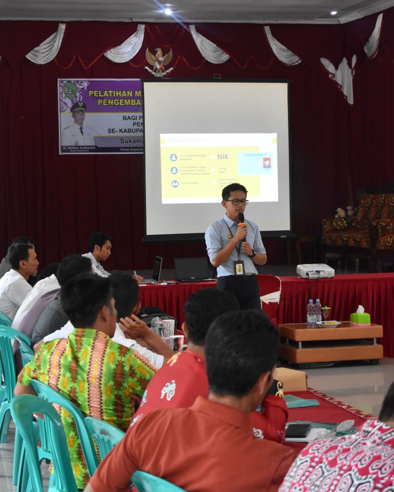 Kantor Pelayanan Pajak Pratama Pangkalanbun bersama Kantor Pelayanan, Penyuluhan, dan Konsultasi Perpajakan (KP2KP) Sukamara bekerja sama dengan Dinas Koperasi UKM dan Perdagangan Kabupaten Sukamara mengadakan kegiatan edukasi perpajakan koperasi se-Kabupaten Sukamara, Kalimantan Tengah (Rabu, 24/5). Kegiatan ini diselenggarakan di Aula Desa Natai Sedawak, Kabupaten Sukamara, Kalimantan Tengah.