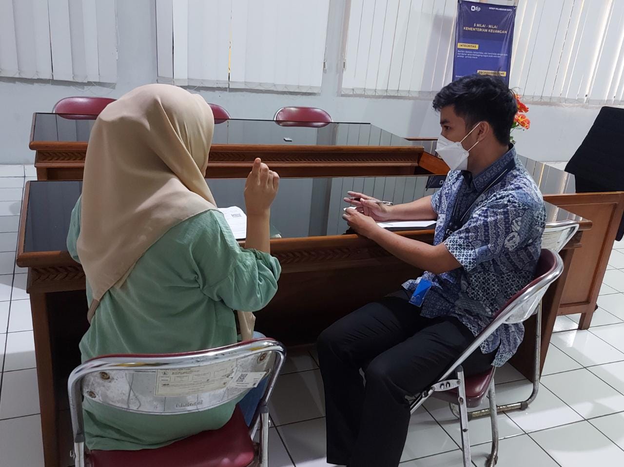 “Untuk persyaratan cetak ulang kartu NPWP Badan, mohon ibu menyampaikan formulir permintaan kembali NPWP, akta pendirian dan/atau perubahan, serta NPWP dan KTP salah satu pengurus,” jelas Raymandha Mohamad, Pelaksana Kantor Pelayanan, Penyuluhan, dan Konsultasi Perpajakan (KP2KP) Pelabuhan Ratu saat melayani konsultasi wajib pajak di ruang aula KP2KP Pelabuhan Ratu, Jalan Bhayangkara Km 1, Palabuhanratu, Sukabumi (Jumat, 25/11).