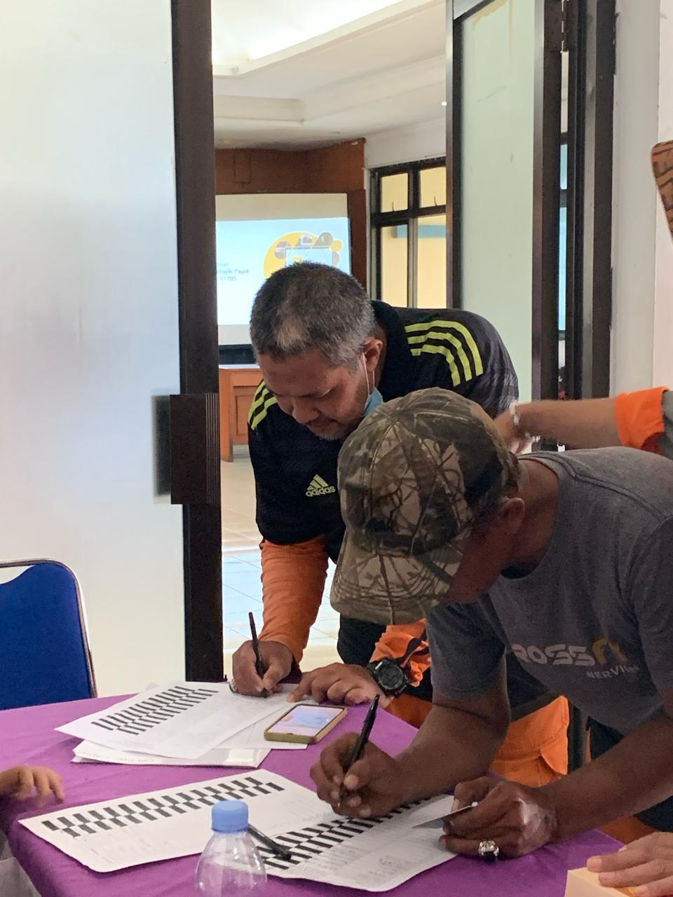 Sebelum dimulai tutorial pengisian SPT, dilaksanakan pemberian cendera mata kepada pihak Kelurahan sebagai ungkapan terima kasih atas partisipasi dalam kegiatan sosialisasi. Selanjutnya dilakukan sesi foto bersama.