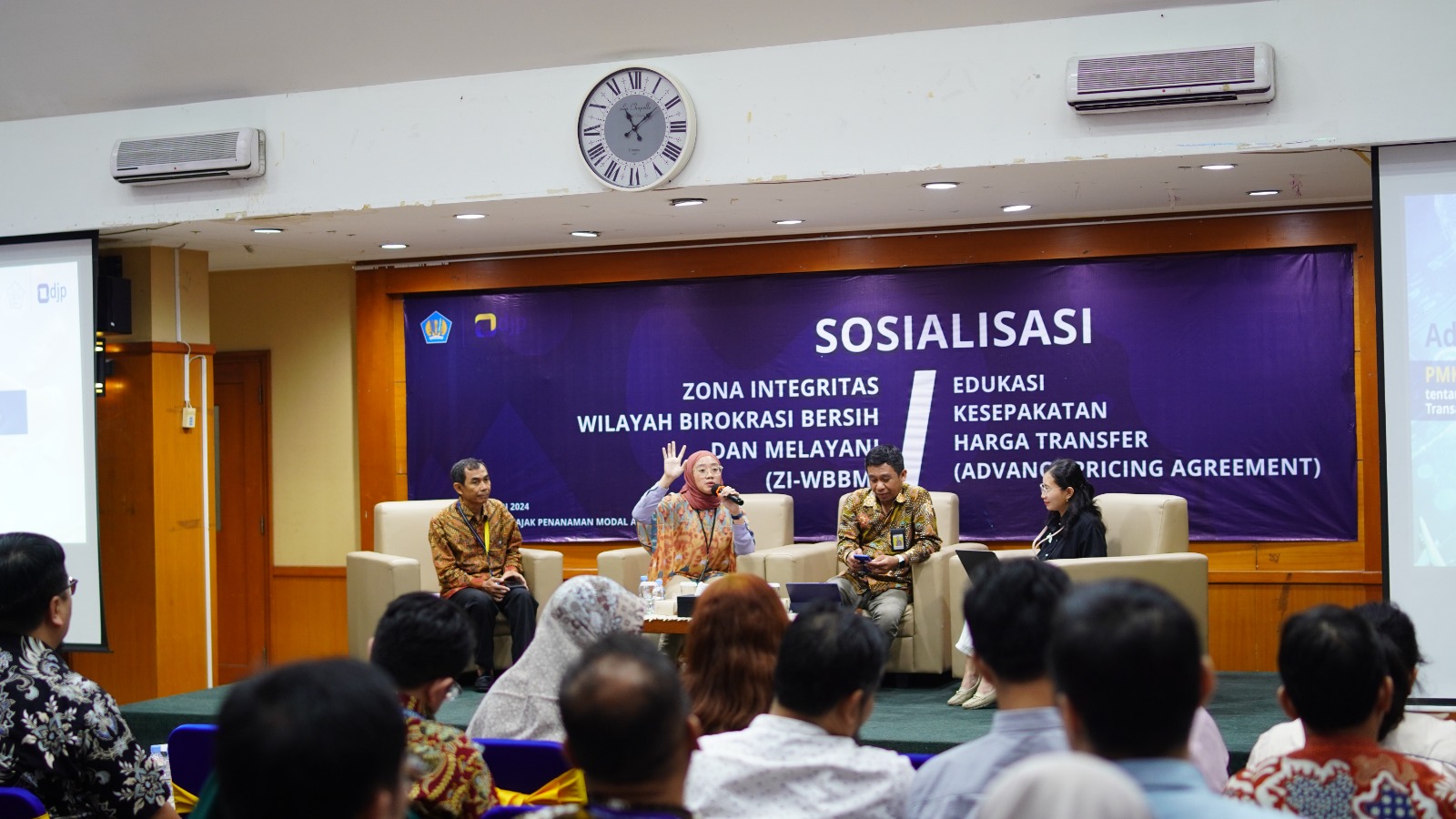 Kantor Pelayanan Pajak (KPP) Penanaman Modal Asing Dua (PMA Dua) menyelenggarakan Kegiatan Edukasi Kesepakatan Harga Transfer (Advance Pricing Agreement/APA) dan Sosialisasi Zona Integritas Wilayah Birokrasi Bersih dan Melayani (ZI-WBBM) kepada Wajib Pajak di Aula KPP Penanaman Modal Asing Dua, Kalibata, Jakarta Selatan (Selasa, 20/2).