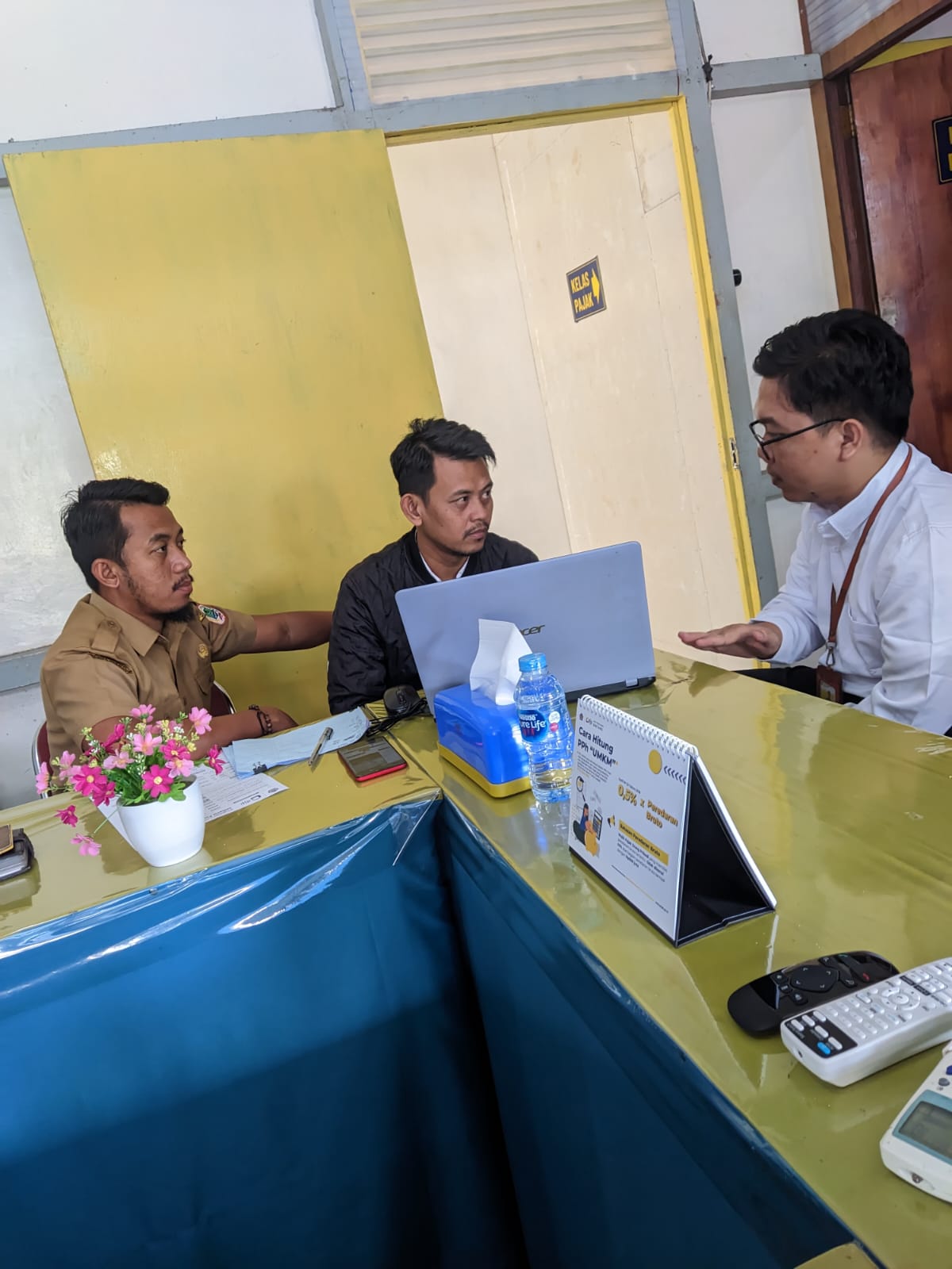 Kantor Pelayanan, Penyuluhan dan Konsultasi Perpajakan (KP2KP) Putussibau mengadakan sosialisasi perpajakan Elektronik Bukti Potong (e-Bupot) dan Surat Pemberitahuan (SPT) unifikasi instansi pemerintah dalam hal ini diwakili oleh Bendahara Dinas Arsip dan Perpustakaan yang bertempat di Ruang Kelas Pajak KP2KP Putussibau, Kabupaten Kapuas Hulu, Kalimantan Barat (Senin, 03/04).