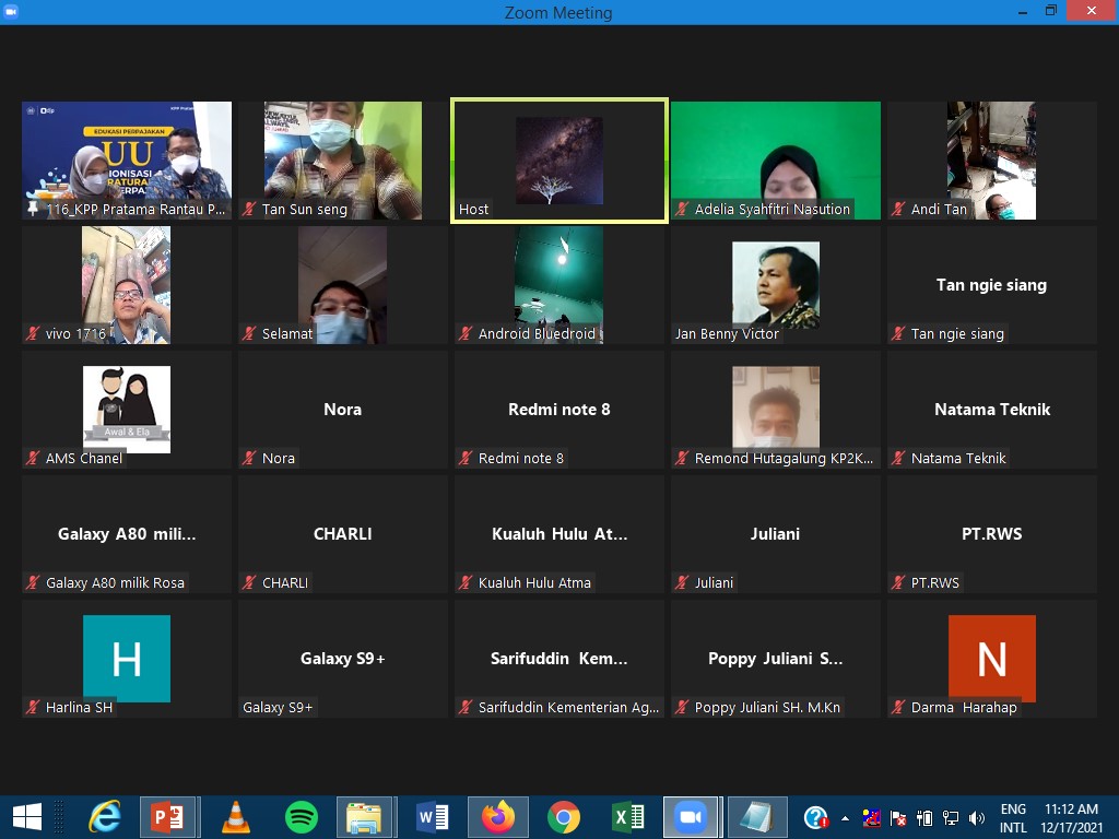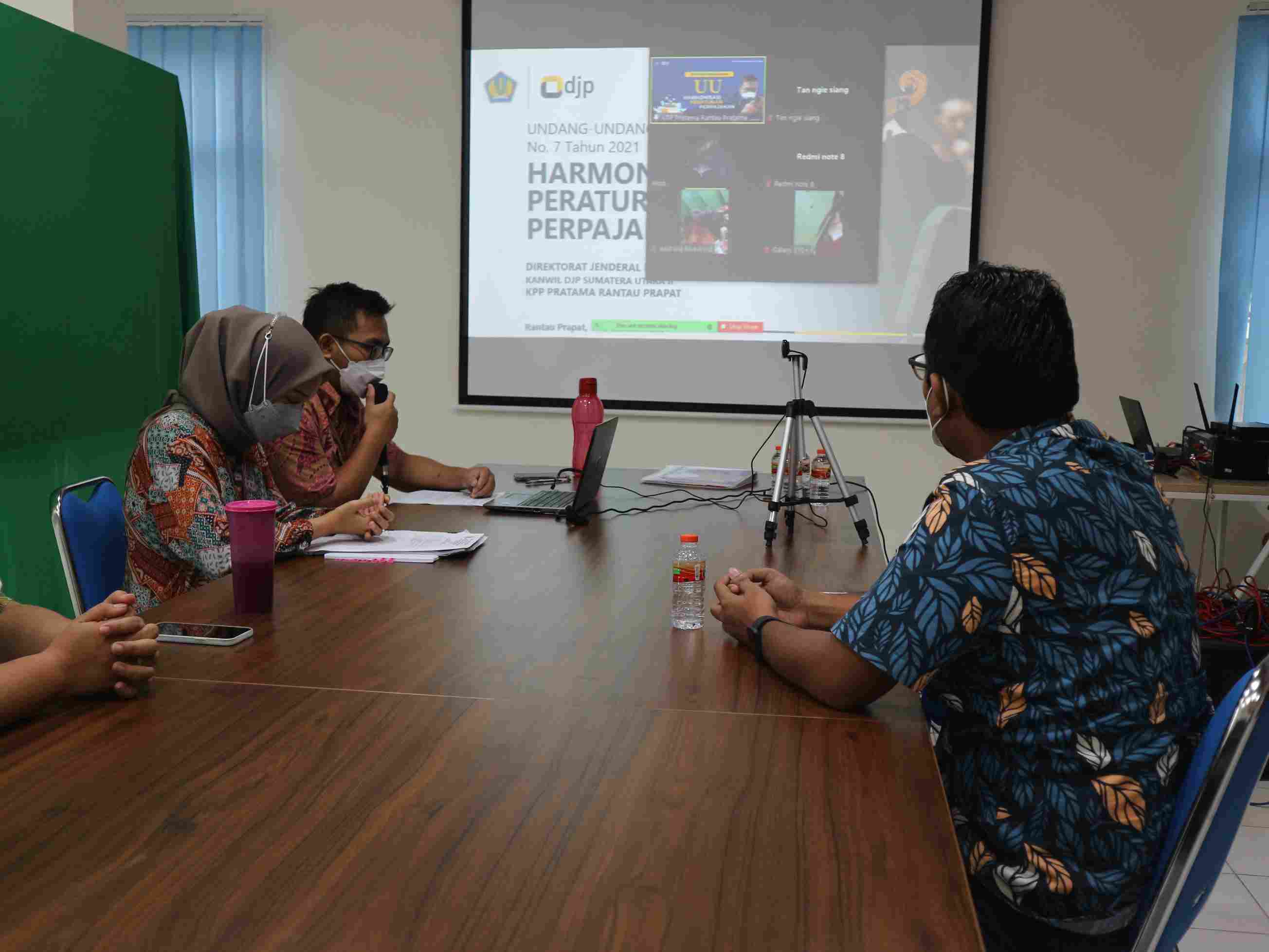 Kantor Pelayanan Pajak (KPP) Pratama Rantau Prapat mengadakan edukasi perpajakan terkait Undang-Undang (UU) Harmonisai Peraturan Perpajakan (HPP) melalui aplikasi Zoom Meeting di Aula KPP Pratama Rantau Prapat di Kabupaten Labuhan Batu, Sumatera Utara (Jumat, 17/12).