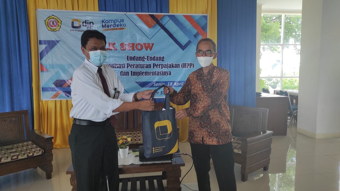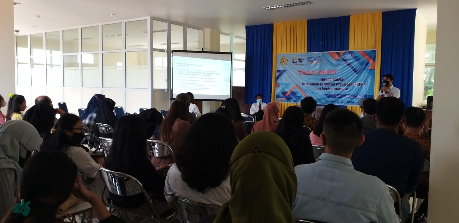 Kantor Pelayanan Pajak (KPP) Pratama Salatiga bekerja sama dengan Tax Center Sekolah Tinggi Imu Ekonomi (STIE) AMA Salatiga menggelar Talk Show perpajakan dengan tema Undang Undang Harmonisasi Peraturan Perpajakan (UU HPP) di aula lantai 2 STIE AMA Salatiga (Senin, 18/4).