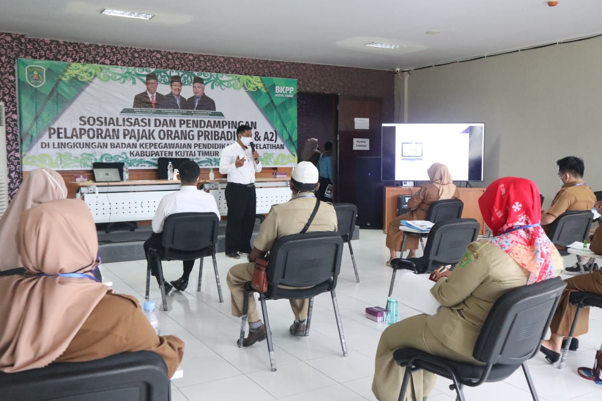 Kantor Pelayanan, Penyuluhan, dan Konsultasi Perpajakan (KP2KP) Sangatta memberikan edukasi seputar e-Filing kepada 40 Pegawai Negeri Sipil di lingkungan Pemerintah Kabupaten Kutai Timur (Senin, 12/10). Bersama Kantor Pelayanan Pajak (KPP) Pratama Bontang, kegiatan ini dilaksanakan di Badan Kepegawaian Pendidikan dan Pelatihan (BKPP) Kab. Kutai Timur.