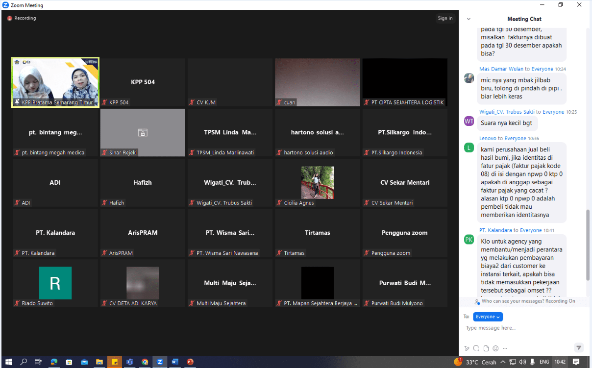 Kantor Pelayanan Pajak (KPP) Pratama Semarang Timur mengadakan kegiatan edukasi perpajakan bagi Wajib Pajak Badan secara daring melalui Zoom Meeting di KPP Pratama Semarang Timur (Rabu, 27/9).