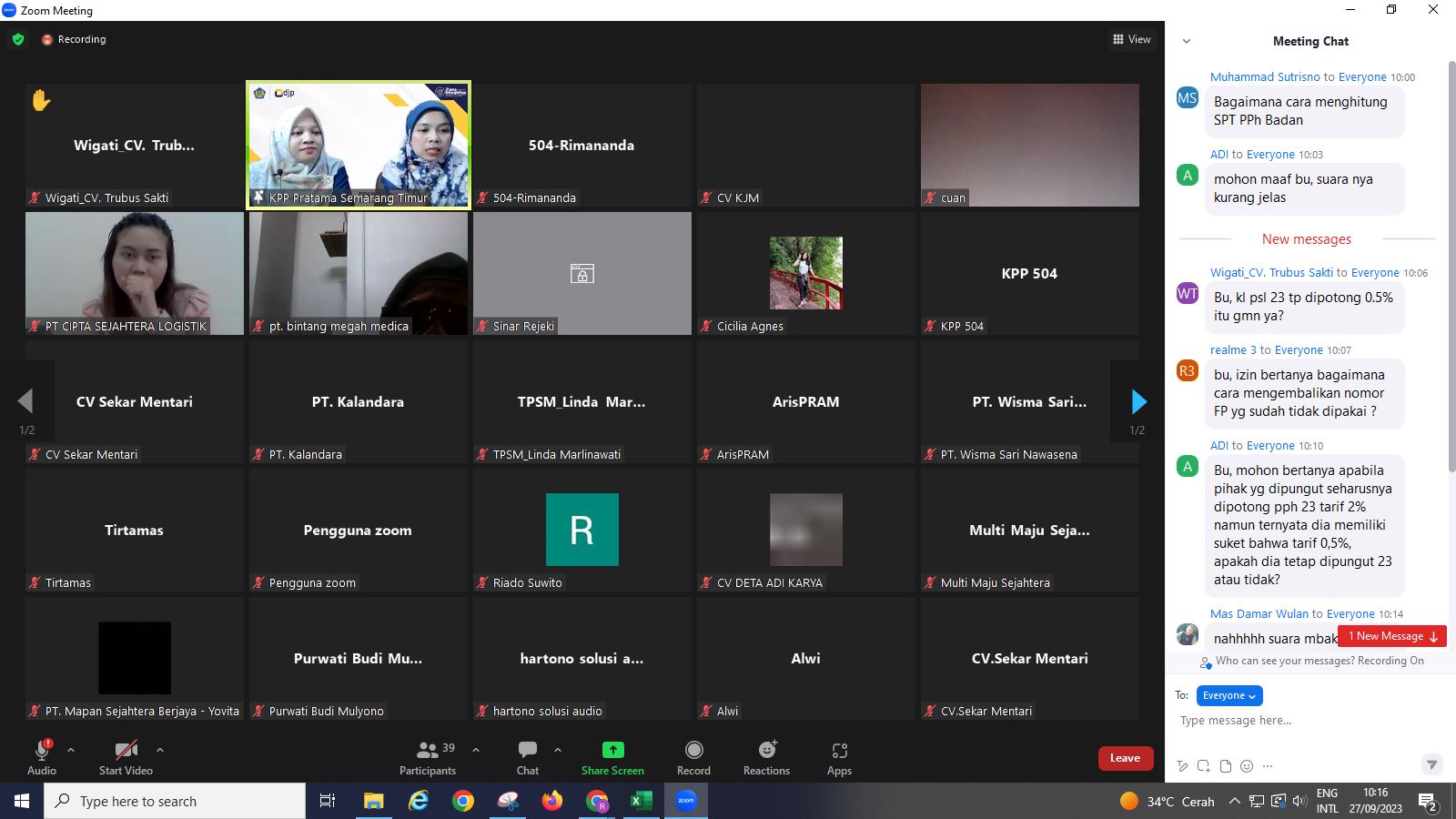 Kantor Pelayanan Pajak (KPP) Pratama Semarang Timur mengadakan kegiatan edukasi hak dan kewajiban Wajib Pajak Badan di KPP Pratama Semarang Timur secara daring melalui Zoom Cloud Meeting (Rabu, 27/9).