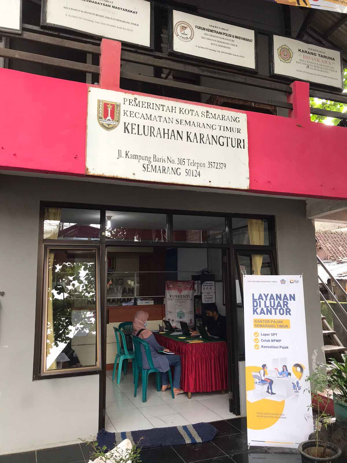 Tim Kantor Pelayanan Pajak (KPP) Pratama Semarang Timur menyelenggarakan kegiatan Layanan di Luar Kantor (LDK) di Kelurahan Karangturi, Kecamatan Semarang Timur, Kota Semarang (Selasa, 21/2). Kegiatan ini direncanakan akan dilaksanakan secara berkala hingga April 2023.