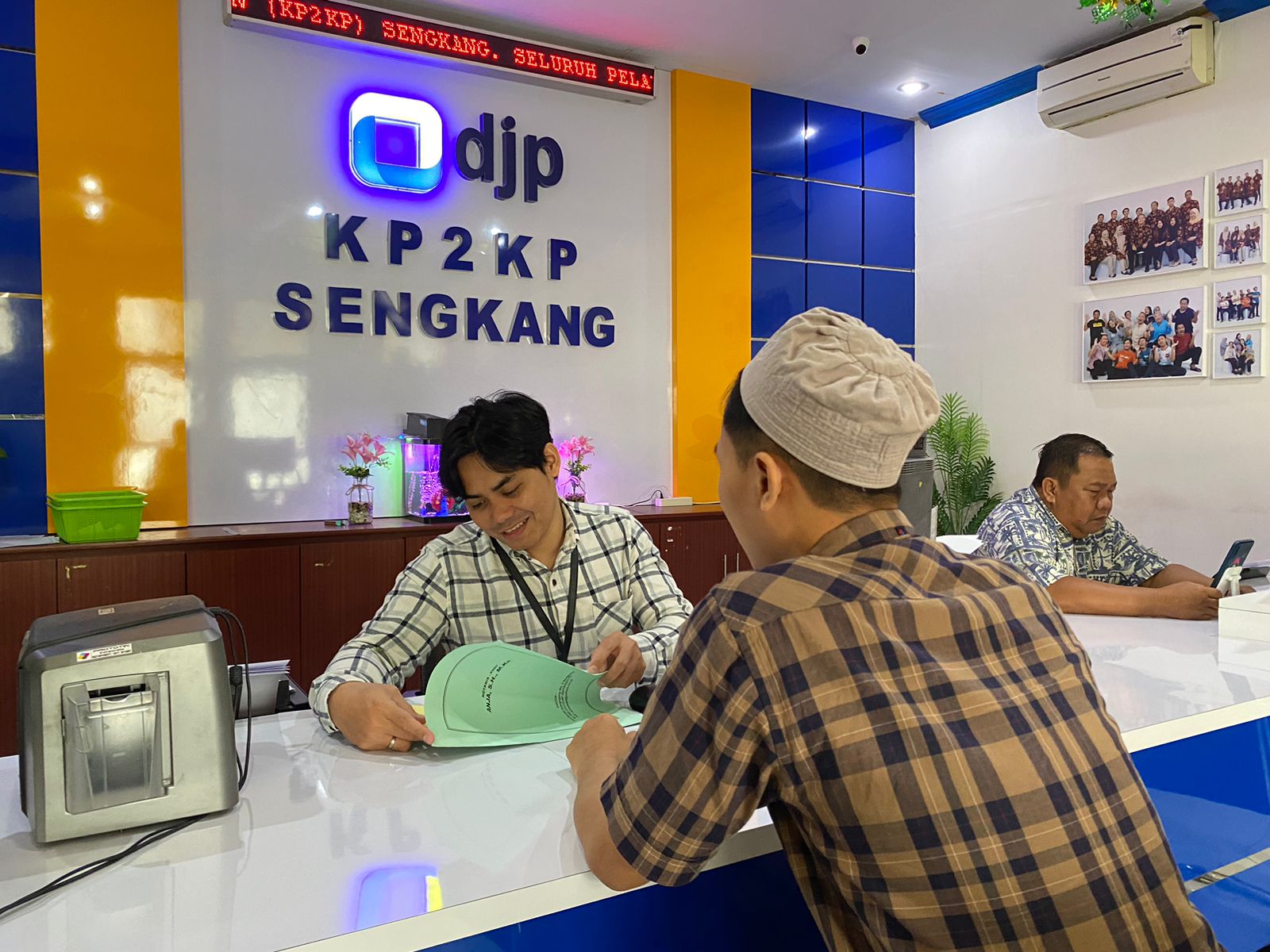 Kantor Pelayanan, Penyuluhan, dan Konsultasi Perpajakan (KP2KP) Sengkang menerima kunjungan dari seorang staf Notaris PPAT di Jalan Nusa Indah, Siengkang, Kecamatan Tempe, Kabupaten Wajo (Selasa, 2/7). Kunjungan diterima dengan baik oleh petugas loket Tempat Pelayanan Terpadu KP2KP Sengkang Muh Azzahir.
