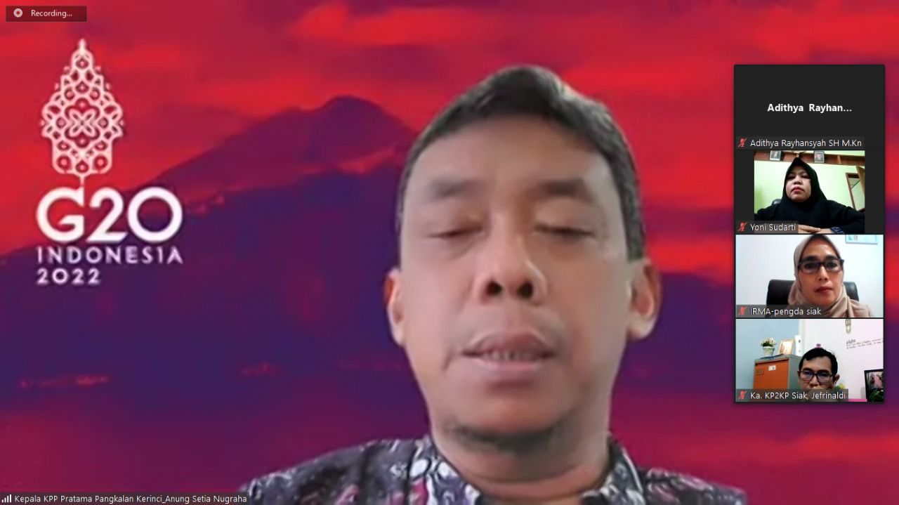 Kantor Pelayanan, Penyuluhan dan Konsultasi Perpajakan (KP2KP) Siak Sri Indrapura kembali menggelar acara Bincang Pajak dengan tema Undang-undang Harmonisasi Peraturan Perpajakan (UU HPP) khususnya Program Pengungkapan Sukarela (PPS) dengan mengundang Notaris dan PPAT se-Kabupaten Siak melalui Zoom Meeting (Jumat, 25/3).