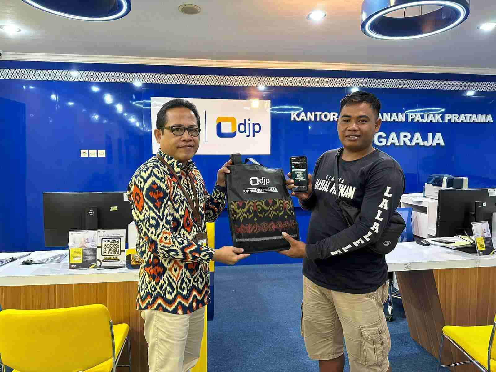 Apresiasi tersebut diberikan kepada I Ketut Tresna Yasa selaku pelapor pertama SPT Tahunan Tahun 2024. Pelaporan SPT Tahunan tersebut dipandu oleh Fungsional Penyuluh Pajak KPP Pratama Singaraja, Herby di loket helpdesk dengan cara e-Filing melalui laman djponline.pajak.go.id.