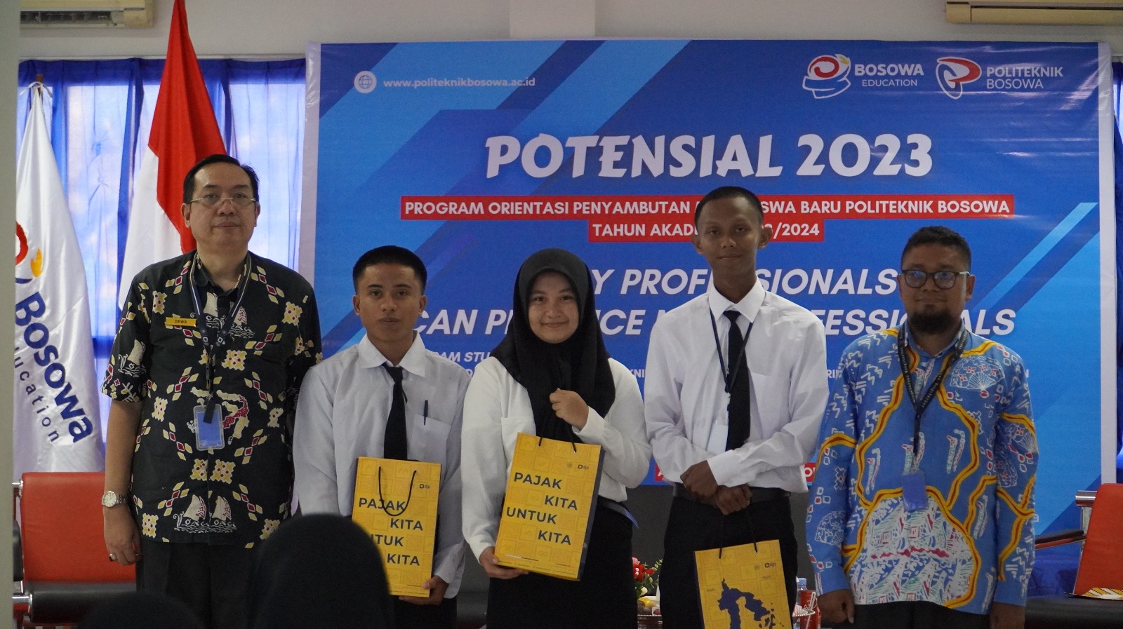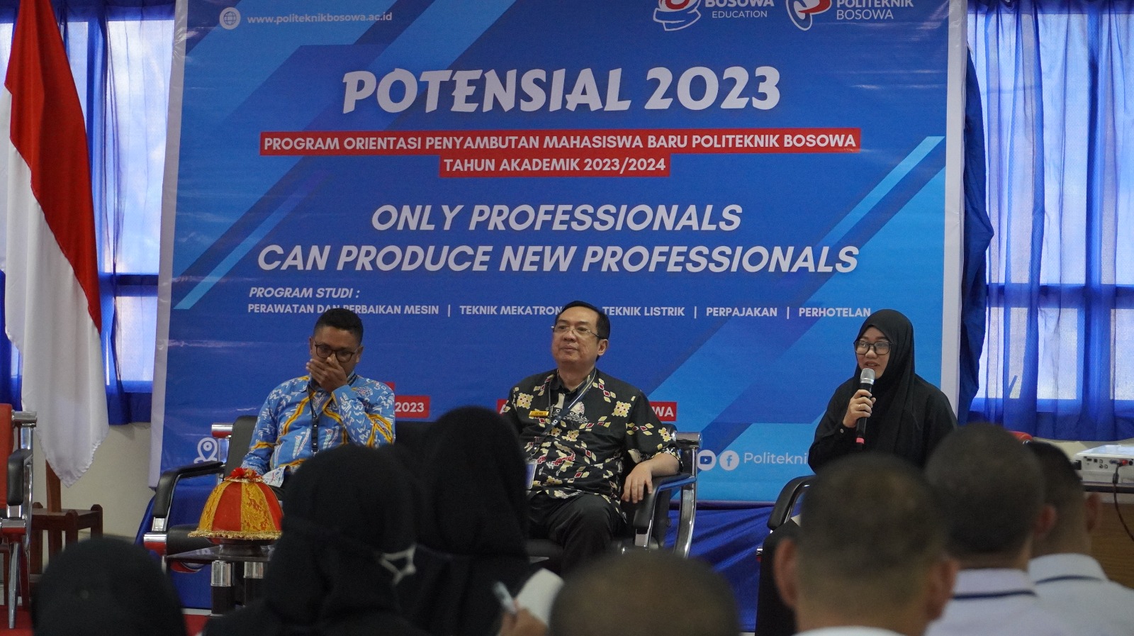 Penyuluh Pajak Ahli Madya Kantor Wilayah Direktorat Jenderal Pajak Sulawesi Selatan, Barat, dan Tenggara (Kanwil DJP Sulselbartra) I Dewa Putu Satria Wibawa dan Penyuluh Pajak Ahli Pertama Kanwil DJP Sulselbartra Hasbullah Ahiri hadir sebagai narasumber dalam kegiatan Program Orientasi Penyambutan Mahasiswa Baru Politeknik Bosowa Tahun 2023 di Aula Kampus Politeknik Bosowa, Jalan Kapasa Raya No.23, Kota Makassar (Selasa, 5/9).