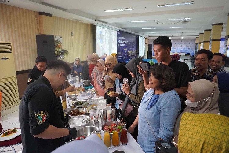 Ada sekitar 50 peserta pelaku UMKM bidang makanan dan minuman yang mengikuti paparan materi dari Shelf Life of Food Products dan Food Product Packaging dari Novi Indah Permata Sari dan Heni Adhianata (OTTIMMO International) serta Cooking Workshop dari Chef Gilbert dan Chef Anthony dari OTTIMMO International.
