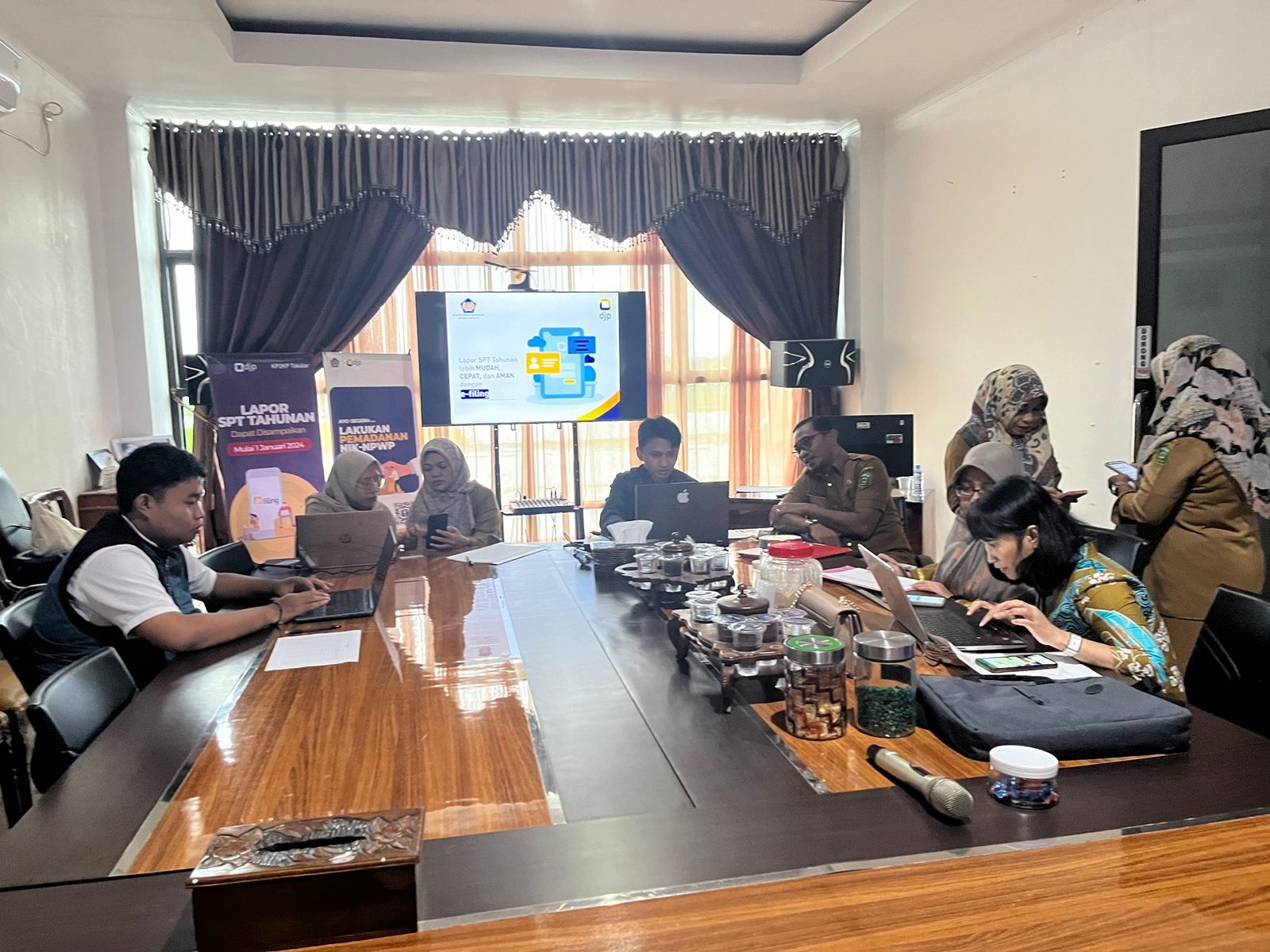 Kantor Pelayanan, Penyuluhan, dan Konsultasi Perpajakan (KP2KP) Takalar melaksanakan kegiatan asistensi penyampaian Surat Pemberitahuan (SPT) Tahunan di Badan Keuangan dan Aset Daerah Kabupaten Takalar yang berlokasi di Jalan Jenderal Sudirman No. 26 Kelurahan Kalabbirang, Kecamatan Pattallassang, Kabupaten Takalar (Selasa, 15/1).