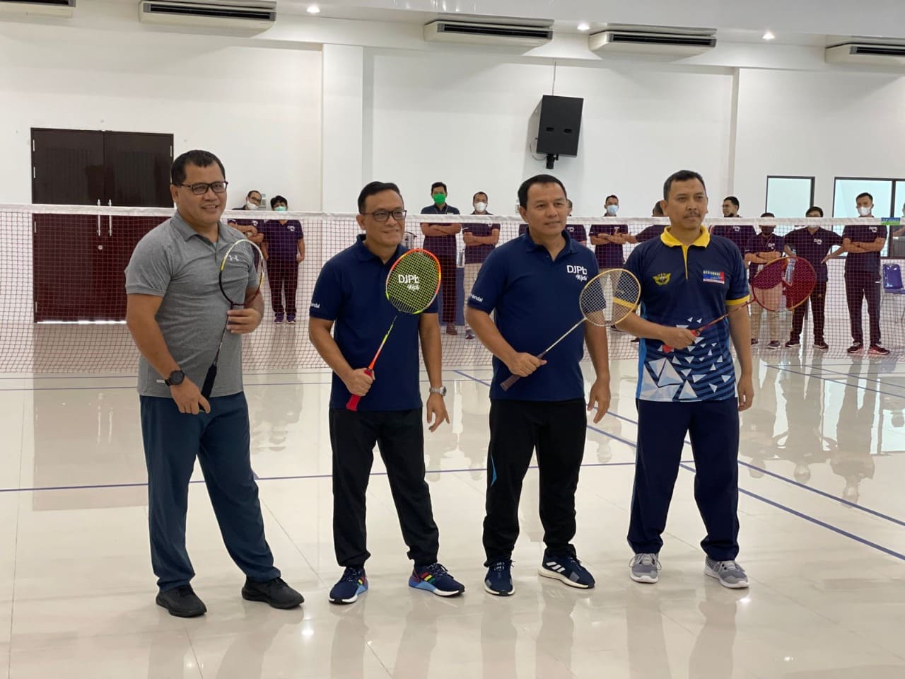 Kepala Kantor Pelayanan Pajak (KPP) Pratama Tanjung Pinang Rudianto Gurning menghadiri acara peresmian Flexible, Responsive, Smart, and Healthy (FRESH) Office yang diselenggarakan oleh Kantor Wilayah Direktorat Jenderal Perbendaharaan Provinsi Kepulauan Riau (Kanwil DJPb Kepri) di aula Kanwil DJPb Kepri, Dompak, Bukit Bestari, Kota Tanjung Pinang, Kepulauan Riau (Jumat, 24/12). Selain peresmian FRESH office dalam acara ini juga diselenggarakan pertandingan bulutangkis antar unit eselon III Kementerian Keuangan wilayah Kepri.