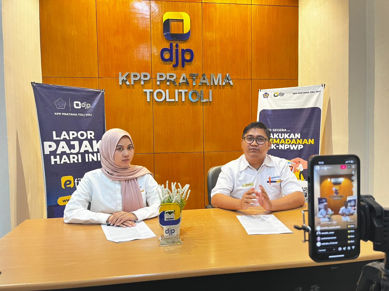 Kantor Pelayanan Pajak (KPP) Pratama Tolitoli kembali menyapa #KawanPajak melalui siaran langsung di media sosial Instagram @pajaktolitoli. Pada kesempatan kali ini, petugas yang melakukan siaran langsung yaitu Pelaksana Khairunnisa Luthfi Wibowo dan Penyuluh Pajak Amshar Masso selaku di Studio Podcast KPP Pratama Tolitoli, Sulawesi Tengah (Senin, 29/1)