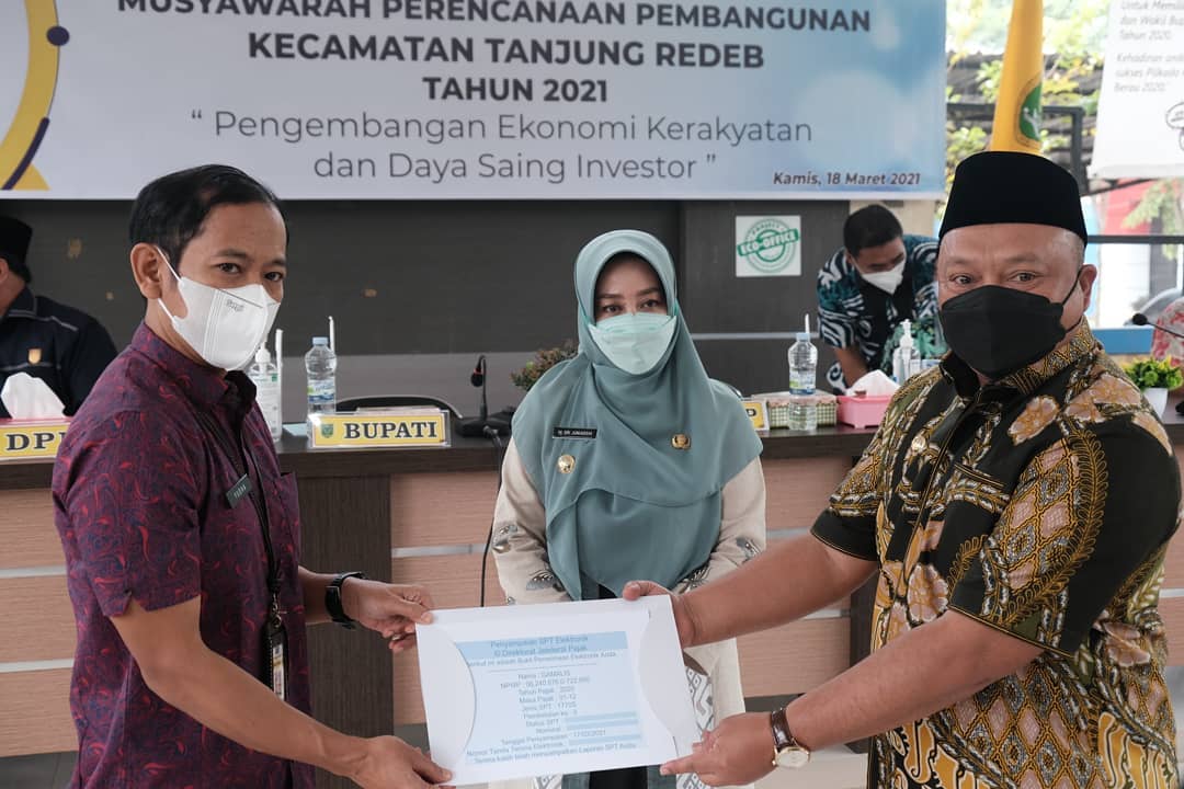 Dalam kesempatan tersebut G. A Yudha Hadiyanto memberikan apresiasi sebesar-besarnya kepada Bupati Berau Hj. Sri Juniarsih dan Wakil Bupati Berau H. Gamalis atas pelaporan SPT Tahunan Tahun 2020 dan sekaligus mengimbau kepada seluruh wajib pajak yang terdaftar, khususnya ASN Pemerintah Daerah Kabupaten Berau agar melakukan pelaporan SPT Tahunan Tahun 2020 sampai batas waktu 31 Maret 2021 dan 30 April untuk Wajib Pajak Badan.