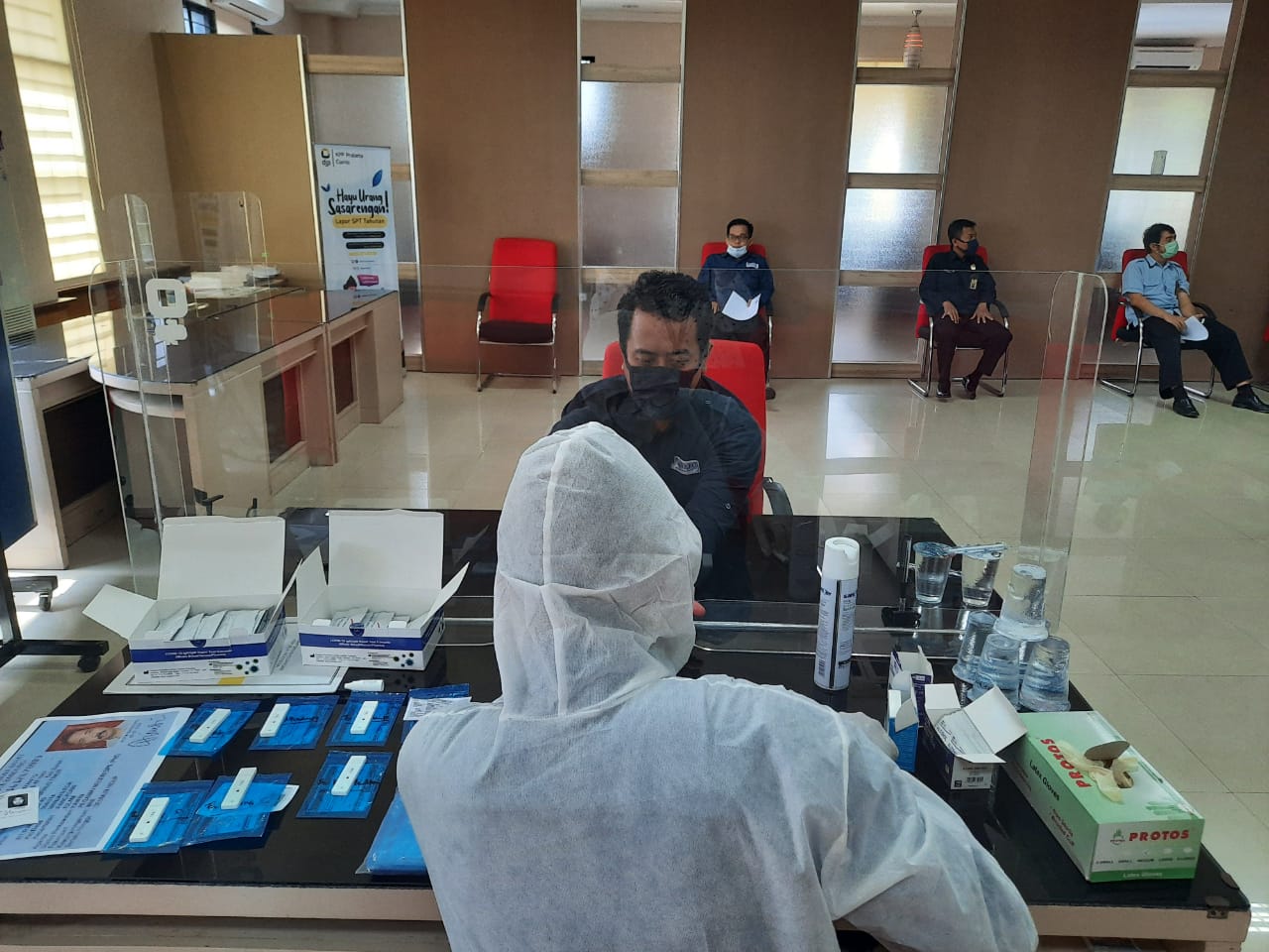 Kantor Pelayanan Pajak (KPP) Pratama Ciamis bekerja sama dengan Laboratorium Kimia Farma mengadakan tes cepat (rapid test) Covid-19 di aula KPP Pratama Ciamis (Kamis, 5/11).