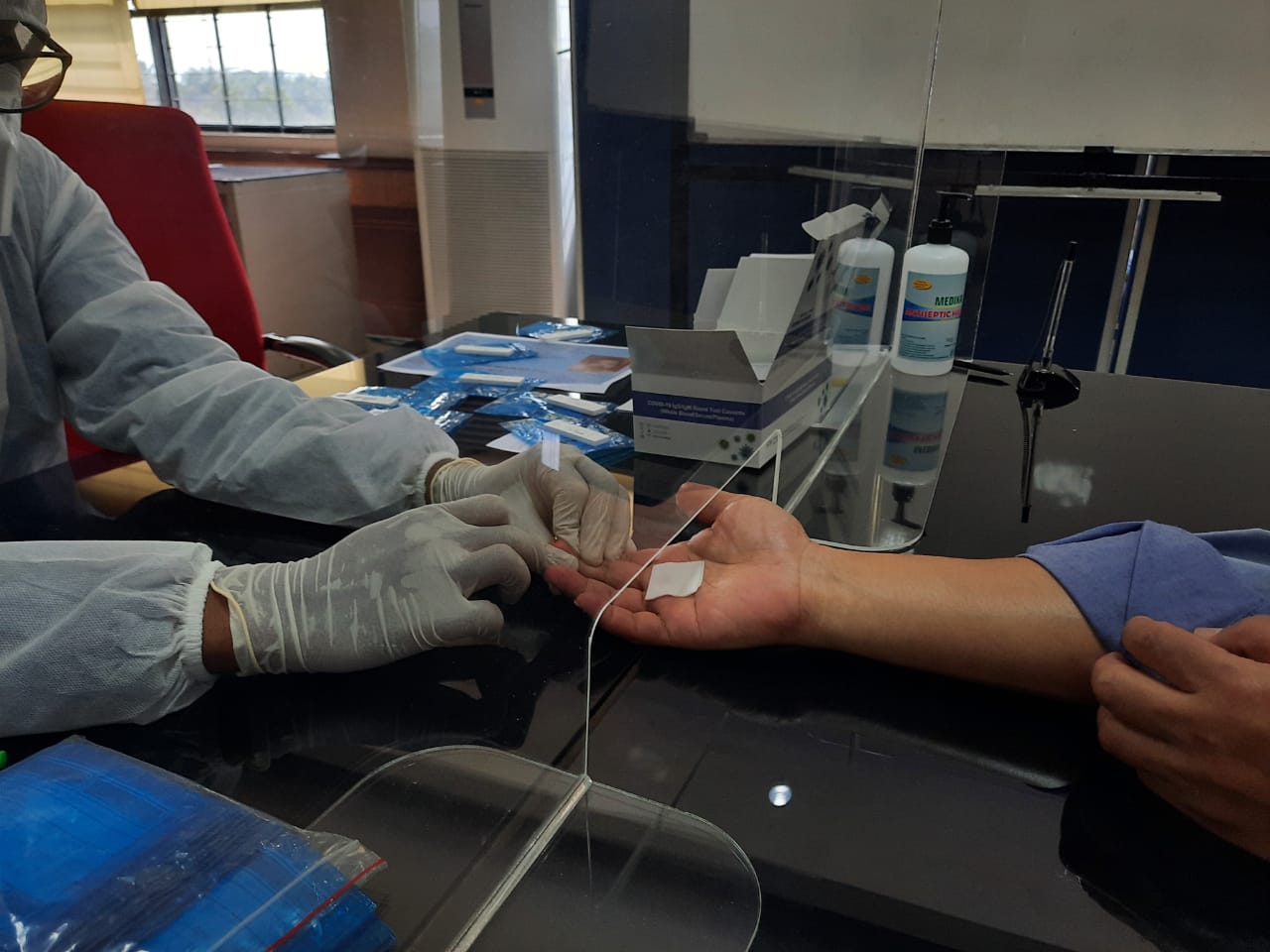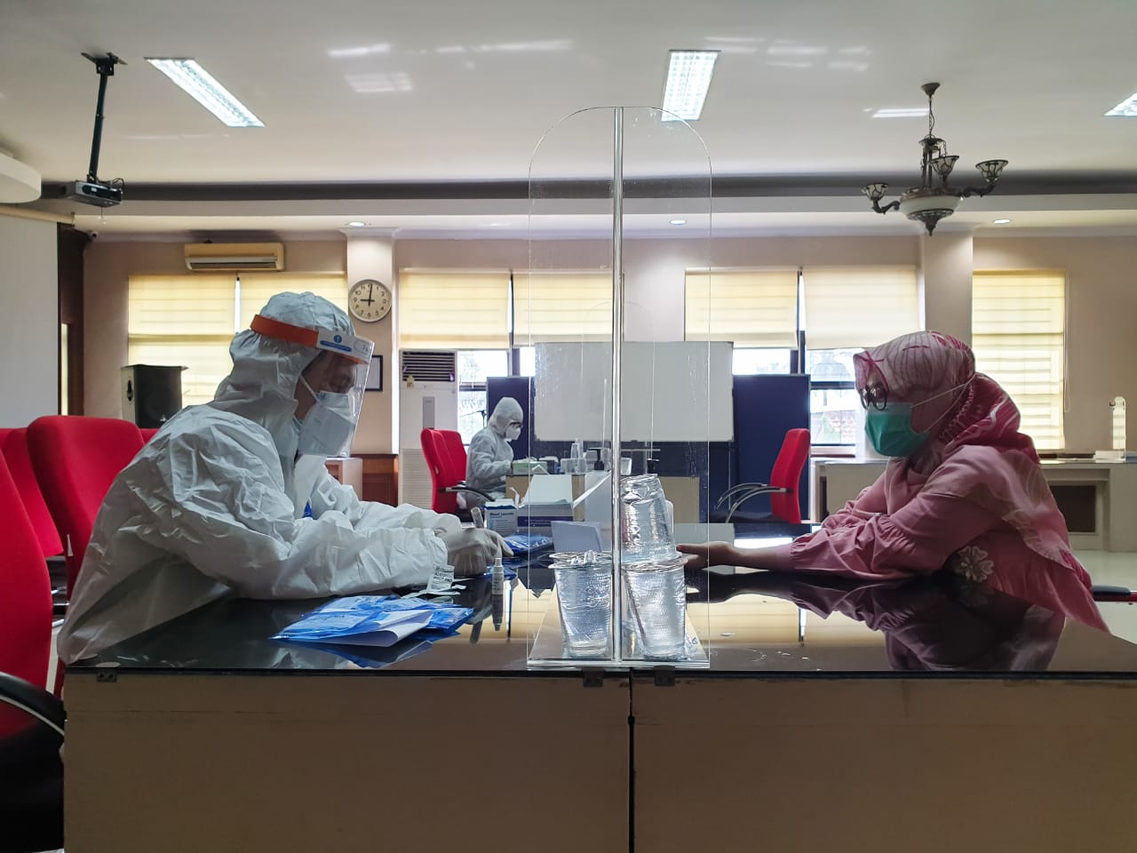 Tes ini berlangsung dengan tetap menerapkan protokol kesehatan secara ketat seperti penggunaan masker dan jaga jarak. Petugas dari Laboratorium Kimia Farma juga mengenakan Alat Pelindung Diri (APD) lengkap selama pelaksanaan tes cepat. (AMAAW)
