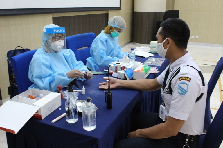 Kanwil DJP Wajib Pajak Besar (WP Besar) mengadakan pemeriksaan kesehatan pegawai dengan metode rapid test di Aula Sinergi 1 lantai 2 gedung Dr. K.R.T Radjiman Wedyodiningrat (Selasa, 07/07). Kegiatan yang dibagi menjadi dua sesi sejak Senin, 7 Juli 2020 ini diadakan sebagai bentuk komitmen Kanwil DJP Wajib Pajak Besar dalam memberikan pelayanan yang optimal kepada wajib pajak sesuai standar protokol kesehatan kenormalan baru.