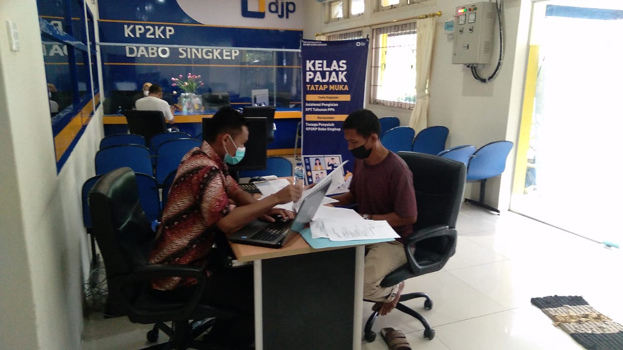 Kegiatan ini bertempat di ruang kelas pajak KP2KP Dabo Singkep. Petugas pelayanan memastikan wajib pajak yang berkunjung langsung sudah mematuhi protokol kesehatan yang berlaku.