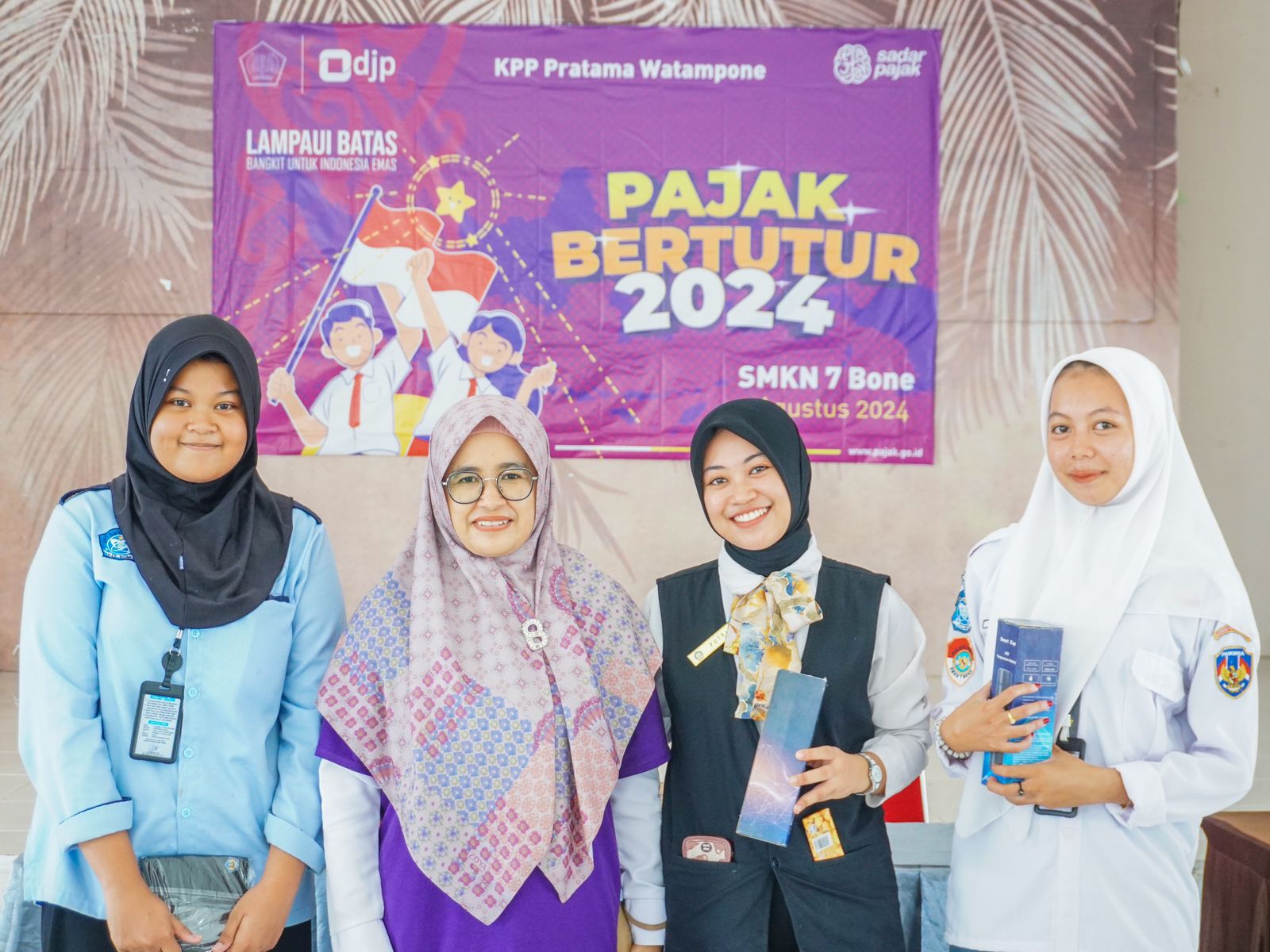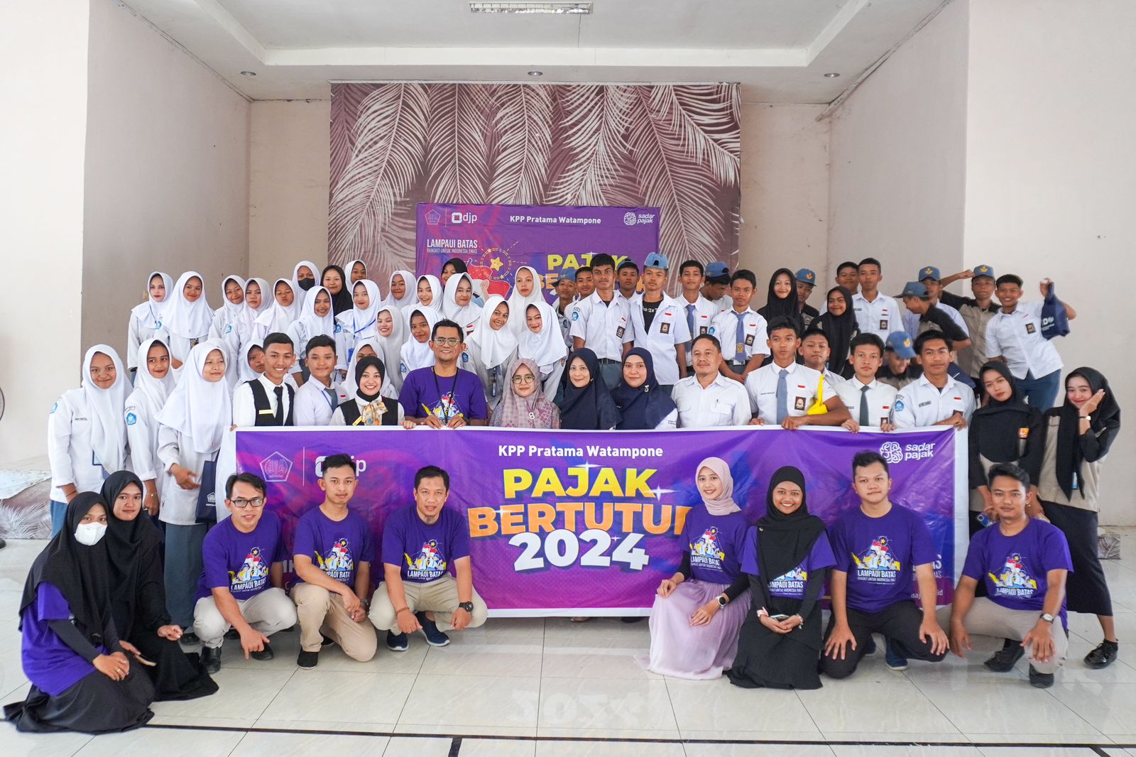Direktorat Jenderal Pajak menyelenggarakan kegiatan Pajak Bertutur (Patur) 2024 dengan tema “Lampaui Batas, Bangkit untuk Indonesia Emas” yang dilakukan oleh seluruh Kantor Pelayanan Pajak (KPP) di Indonesia. KPP Pratama Watampone turut serta dalam menyelenggarakan kegiatan Pajak Bertutur 2024 pada Sekolah Menengah Kejuruan (SMK) Negeri 7 Bone, Kelurahan Biru, Kecamatan Tanete Riattang, Kabupaten Bone (Rabu, 7/8).