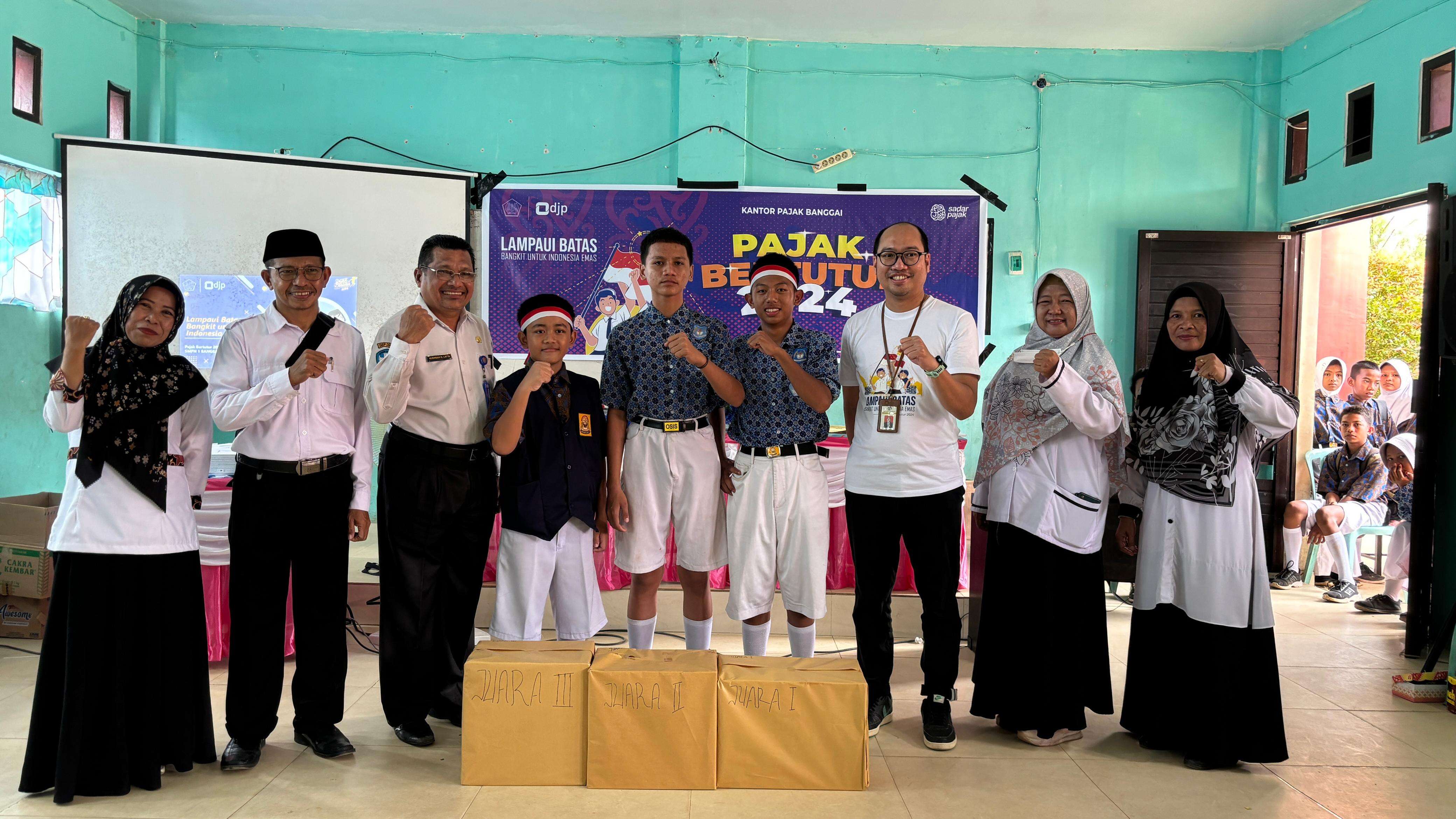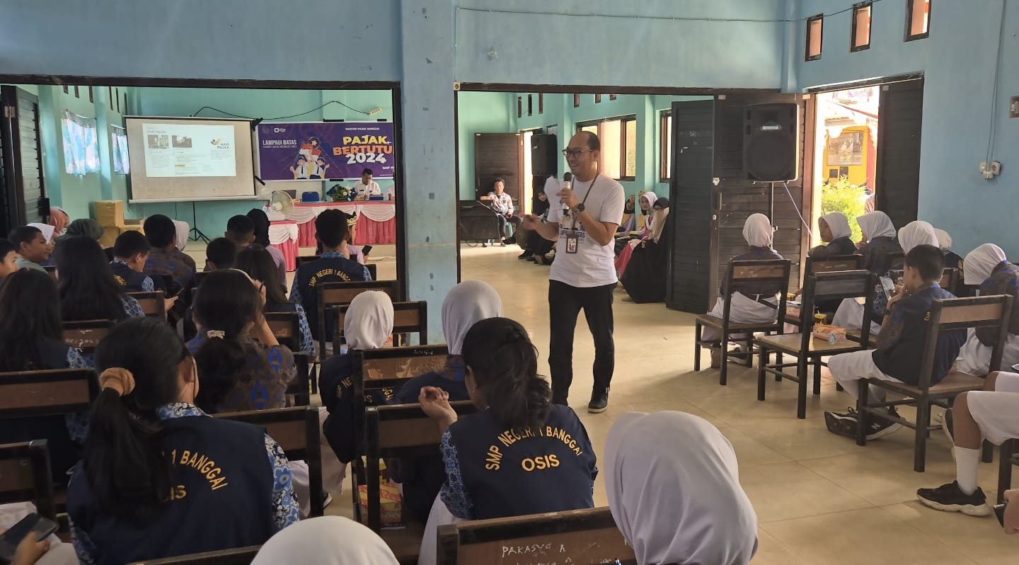 Kantor Pelayanan, Penyuluhan, dan Konsultasi Perpajakan (KP2KP) Banggai menggelar kegiatan Pajak Bertutur 2024 di SMP Negeri 1 Banggai, Sulawesi Tengah (Rabu, 7/8). Kegiatan tersebut digelar di ruang kelas dengan diikuti lima puluh siswa-siswi dari kelas 7 sampai dengan kelas 9. Pajak Bertutur ini hadir dengan tema "Lampaui Batas, Bangkit Untuk Indonesia Emas" serta dilaksanakan secara serentak di seluruh wilayah Indonesia.