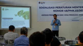 Sosialisasi ini bertujuan untuk menyampaikan Peraturan Menteri Keuangan (PMK) Nomor 48 Tahun 2023 tentang Pajak Penghasilan dan/atau Pajak Pertambahan Nilai atas Penjualan/Penyerahan Emas Perhiasan, Emas Batangan, Perhiasan yang Bahan Seluruhnya Bukan dari Emas, Batu Permata dan/atau Batu Lainnya yang Sejenis, serta Jasa yang terkait dengan Emas Perhiasan, Emas Batangan, Perhiasan yang Bahan Seluruhnya Bukan dari Emas, dan/atau Batu Permata dan/atau Batu Lainnya yang Sejenis, yang Dilakukan oleh Pabrikan Emas Perhiasan, Pedagang Emas Perhiasan, dan/atau Pengusaha Emas Batangan.