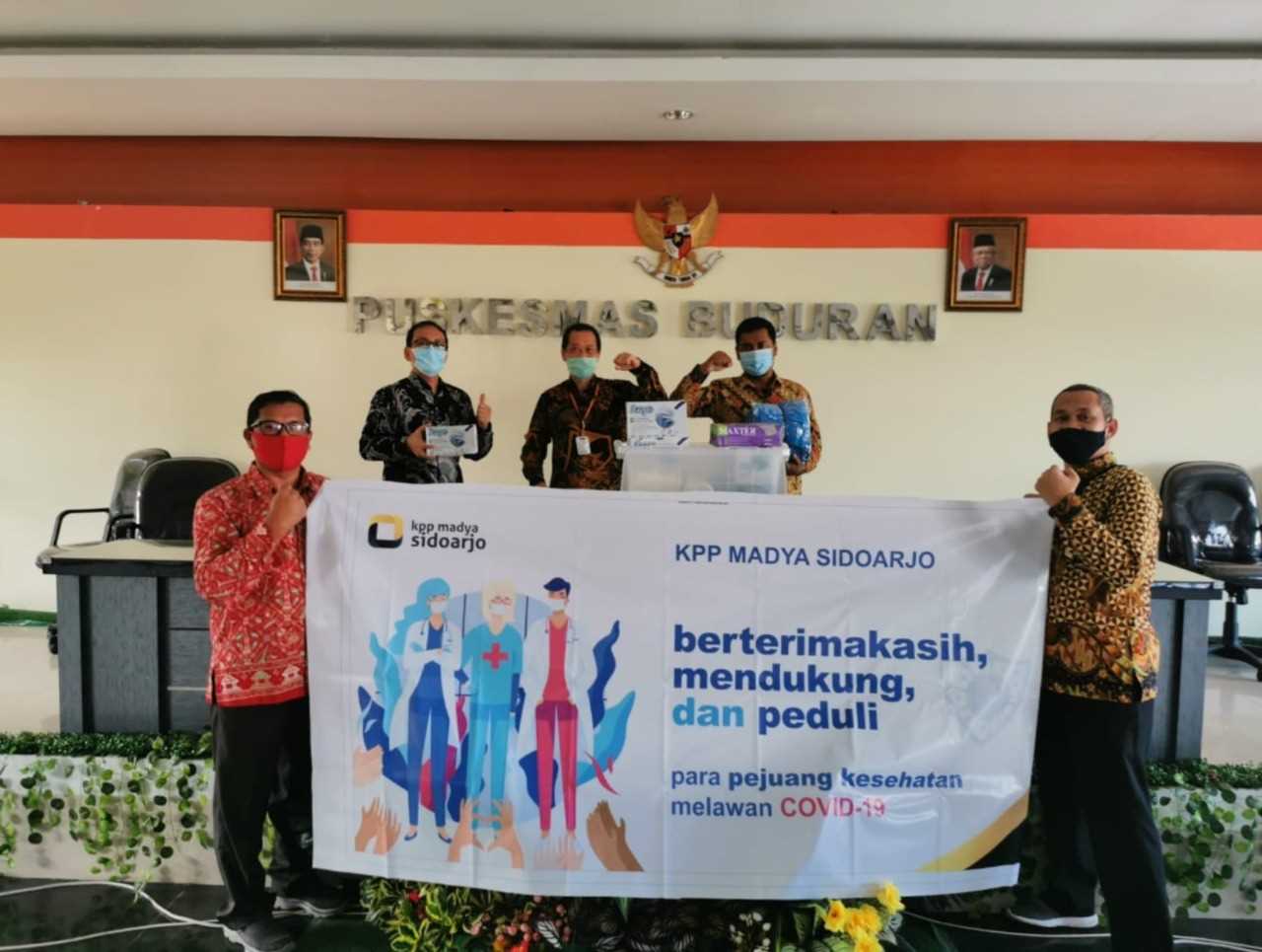 Sumbangan pertama diberikan kepada Puskesmas Kecamatan Gedangan, Kabupaten Sidoarjo yang diterima oleh dr. Noer Amalis Sholeha Kepala Puskesmas Gedangan. Noer menyampaikan ucapan terima kasih yang sebesar-besarnya atas perhatian dan kepedulian Kepala KPP Madya Sidoarjo beserta jajaran. Sumbangan tersebut sangat berarti karena sangat dibutuhkan tenaga kesehatan di tengah kondisi wilayah Kabupaten Sidoarjo yang masih termasuk zona merah.