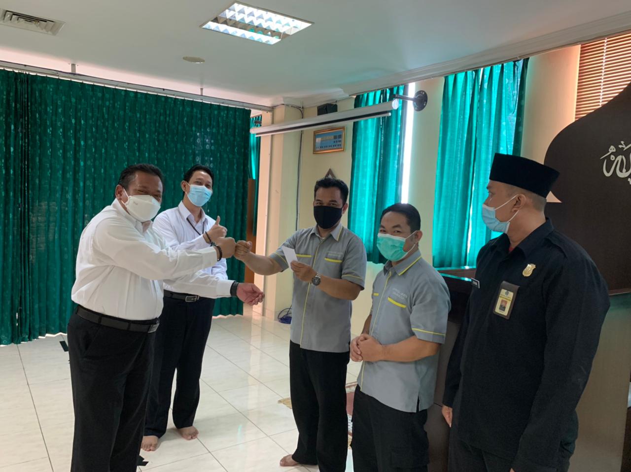 Dewan Kemakmuran Masjid (DKM) An Nur Kantor Pelayanan Pajak (KPP) Pratama Jakarta Tanah Abang Dua dan Tiga memberikan santunan kepada satuan pengamanan, petugas kebersihan, dan pramubakti yang bertugas di lingkungan KPP Pratama Jakarta Tanah Abang Dua dan Tiga di Jakarta (Senin, 10/5).