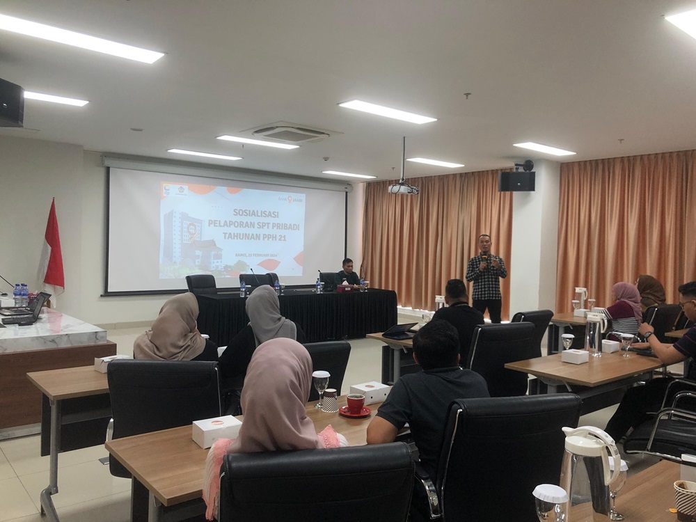 Kantor Pelayanan Pajak Pratama Jambi Telanipura menggelar edukasi serta asistensi terkait Pemadanan Nomor Induk Kependudukan (NIK) sebagai Nomor Pokok Wajib Pajak (NPWP) dan Pelaporan Surat Pemberitahuan (SPT) Tahunan Orang Pribadi melalui e-Filing di Bank Jambi Cabang Utama yang beralamat di Jl Akhmad Yani No.18, Telanaipura, Kota Jambi (Kamis, 22/2). Kegiatan ini digelar untuk meningkatkan kepatuhan wajib pajak, khususnya para Pegawai Cabang Utama Bank Jambi.