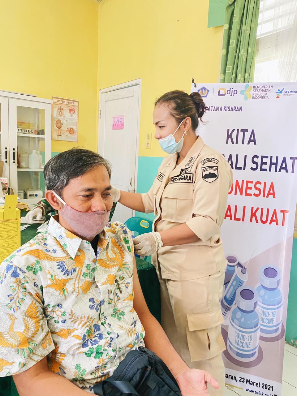 Pegawai Kantor Pelayanan Pajak (KPP) Pratama Kisaran menerima vaksinasi Covid-19 di Rumah Sakit Bantu (Rumkitban) 01.08.01 Kisaran, Jalan Latsitarda VIII Kisaran Naga, Kisaran, Kabupaten Asahan, Sumatera Utara (Selasa, 23/3). Sebanyak 106 pegawai menerima vaksinasi pertama Covid-19. Kegiatan berlangsung mulai pukul 08.00 sampai dengan 15.00 WIB.