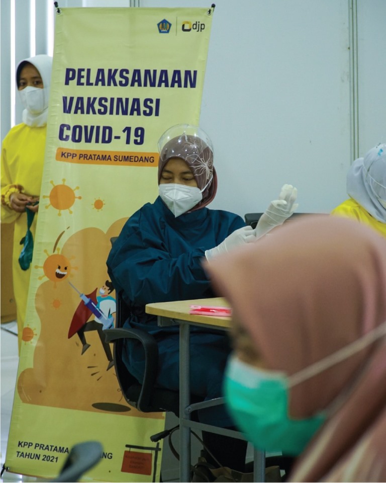 Kegiatan yang bertujuan menyukseskan program pemerintah dalam upaya melindungi masyarakat dari ancaman virus Covid-19 ini terselenggara atas kerja sama KPP Pratama Sumedang dengan Dinas Kesehatan Kabupaten Sumedang melalui Unit Pelaksana Teksnis Daerah (UPTD) Puskemas Cisempur.