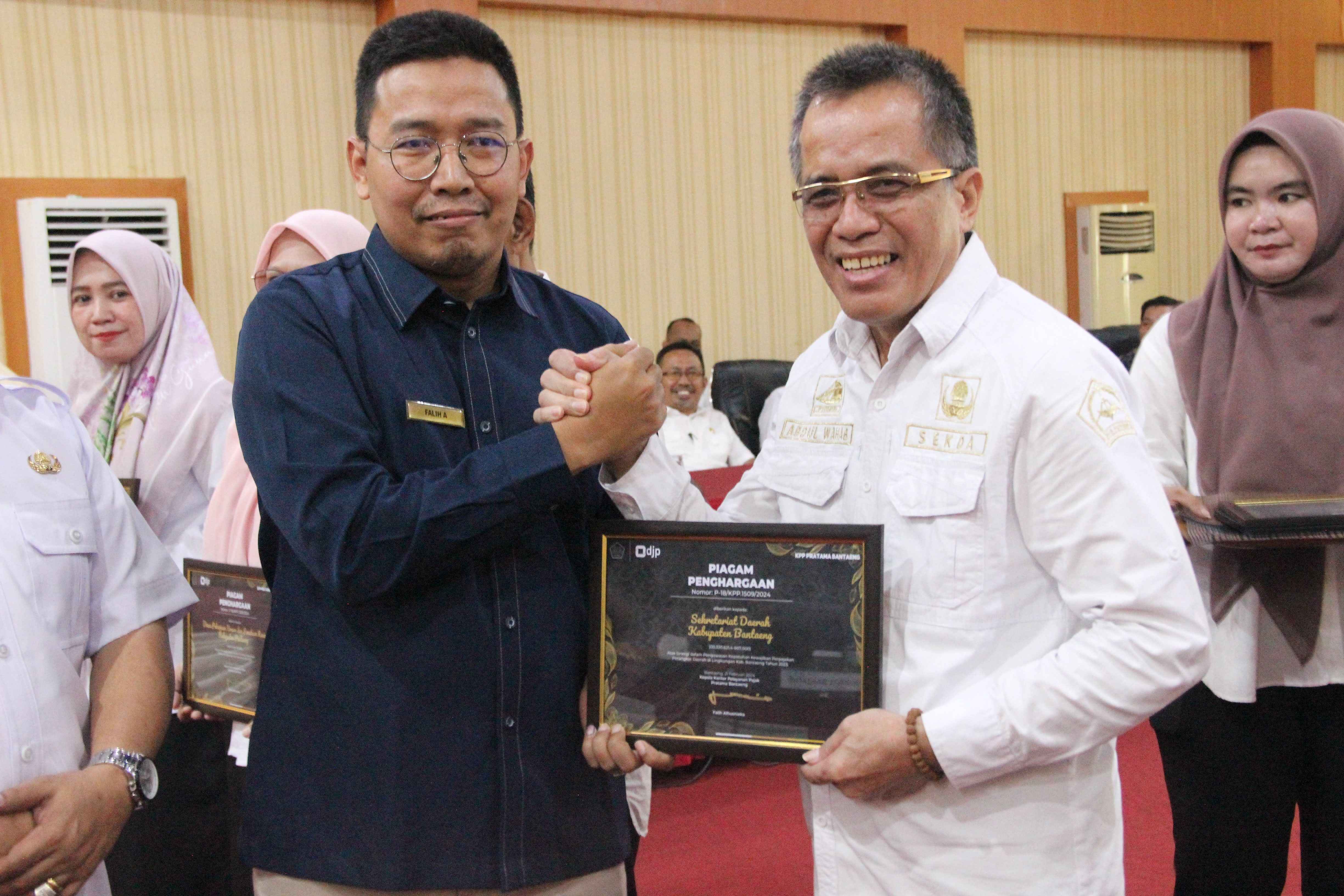Di samping itu, Sekretariat Daerah Bantaeng, Inspektorat Daerah Bantaeng, Badan Pengelola Keuangan Kabupaten Bantaeng, dan Dinas PMDPPPA Bantaeng juga menerima penghargaan atas Sinergi, Kepatuhan, dan Pengawasan Perpajakan tahun 2023.