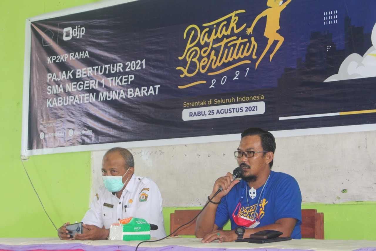 Kantor Pelayanan, Penyuluhan, dan Konsultasi Perpajakan (KP2KP) Raha menyelenggarakan kegiatan Pajak Bertutur secara luring di SMA Negeri 1 Tiworo Kepulauan, Kabupaten Muna Barat (Rabu, 25/8). Kegiatan ini dihadiri oleh 30 orang murid SMA Negeri 1 Tiworo Kepulauan dan dilaksanakan sesuai protokol kesehatan Covid-19.